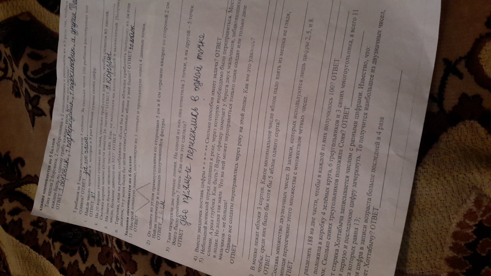 5. Нужно, чтобы 1 мальчик переплыл на другой берег, вышел из лодки, и тогда один офицер переплывет на другой берег. После этого мальчик переплавиться вновь на лодке на другой берег, ко второму мальчику, они оба переправляются на противоположный берег, после этого начинаем все сначала: 1 мальчик переплывает на другой берег, выходит из лодки, один офицер садиться в лодку и переплывет на другой берег. После этого мальчик переплавиться вновь на лодке на другой берег, ко второму мальчику, они оба переплывают на противоположный берег, и так, пока все офицеры не переберутся.