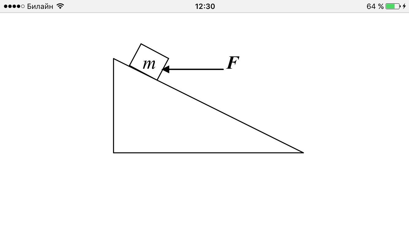 Чтобы удержать на наклонной плоскости небольшое тело массой m, к нему при- кладывают горизонтальную силу F, как показано на рисунке. Величина силы F мо- жет меняться. Тело остается неподвижным на наклонной плоскости, пока