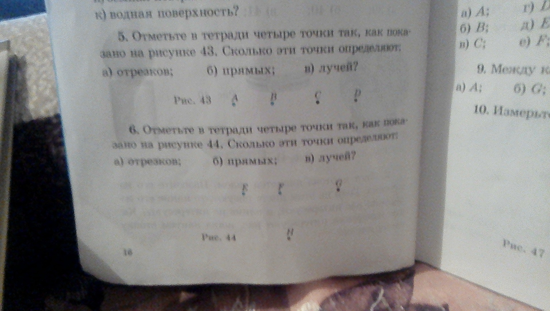 отрезков 4; прямых 2; лучей 2