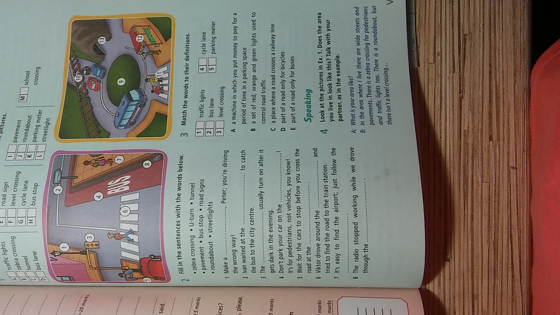вот второе: 1 u-turn, 2 bus stop, 3 streetlights, 4 pavement, 5 zebra crossing 6 roundabout, 7 road signs, 8 tunnel
