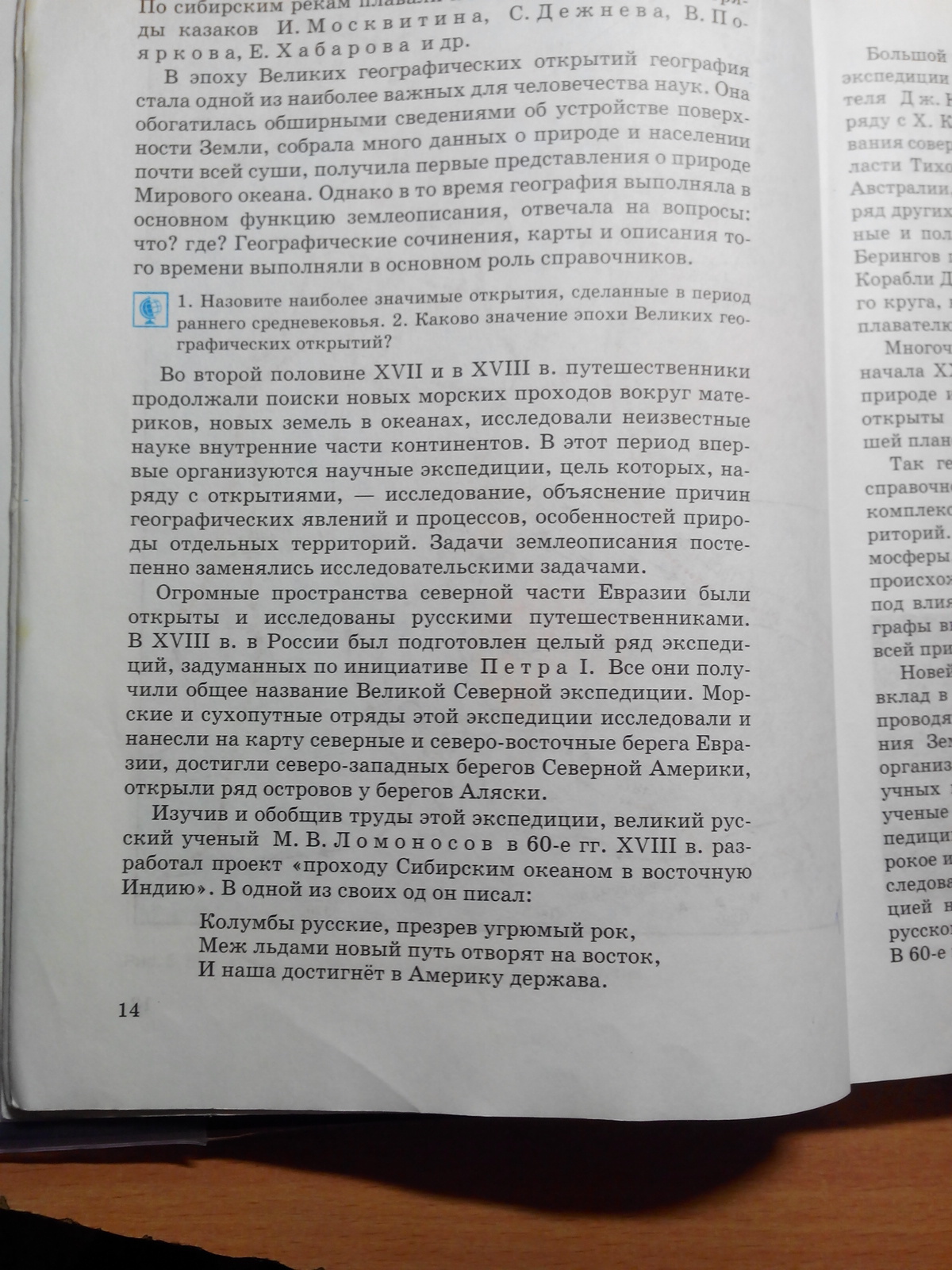Материал Учебник Географии 7 класс, тема Великие географические открытия.