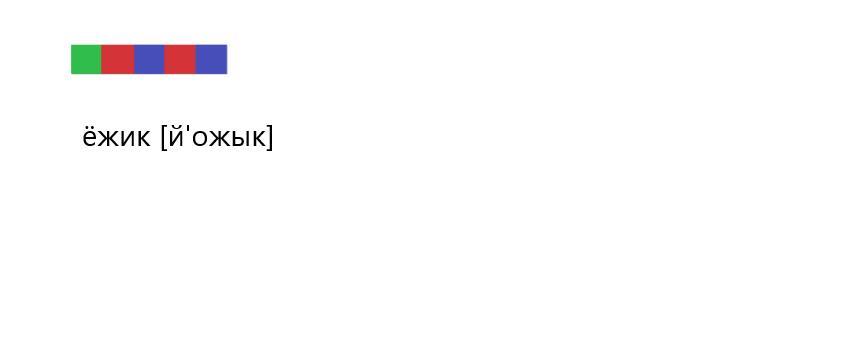ёжик [й’ожык]: 4 буквы, 5 звуков.