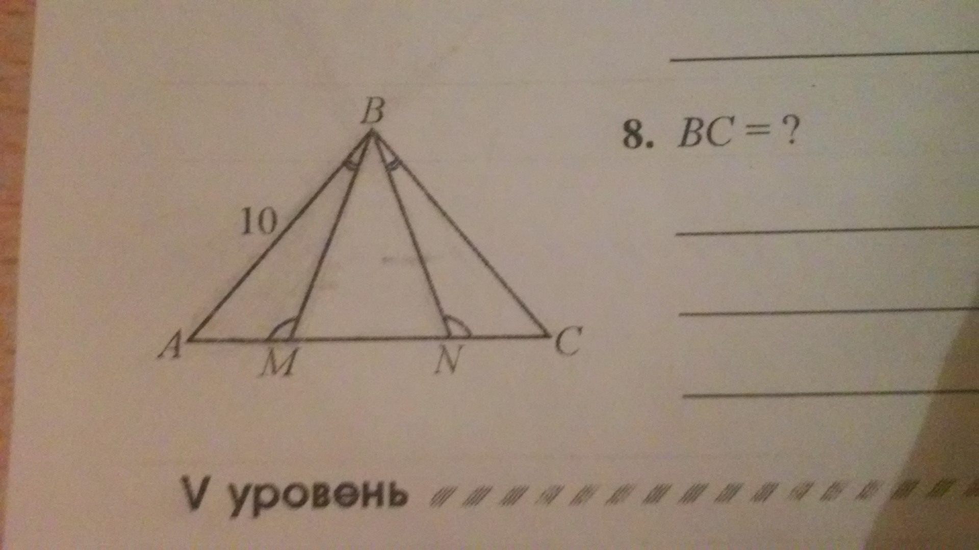 1)угол ВМН=у ВНМ, тк они смежные с у. ВМА и у. ВНС, следовательно ВМ=МН, тк ВМН р/б