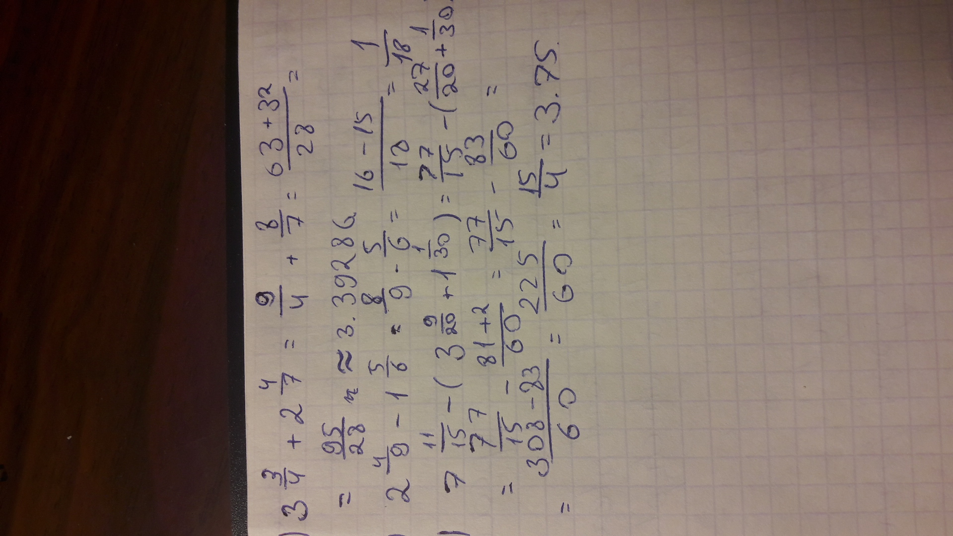 найдите значение выражения А) 3 целых 3/4 +2 целых 4/7 Б)2 целых 4/9 -1 целых 5/6 В) 7 целых 11/15-(3 целых 9/20+1 целых 1/30)