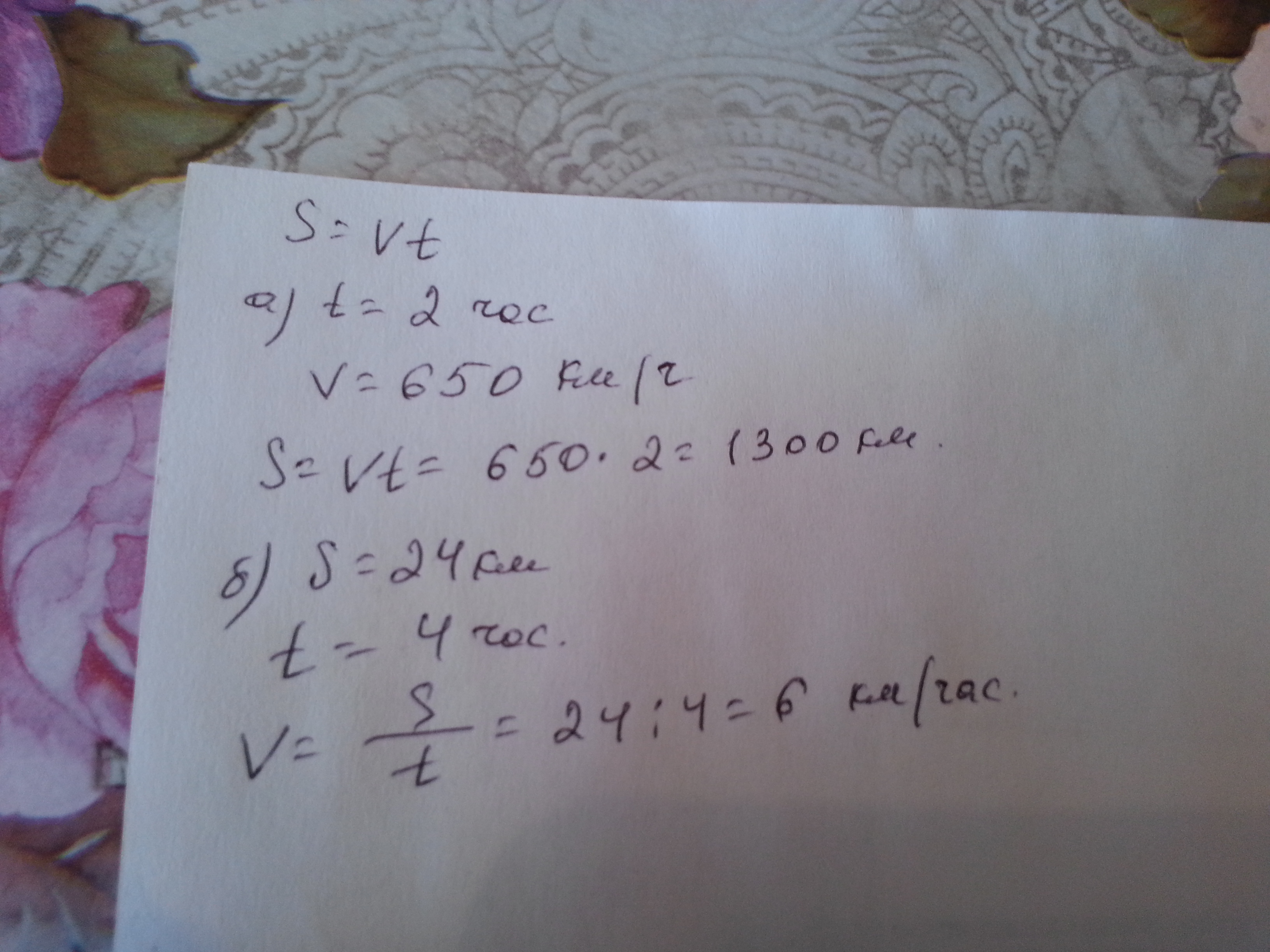 а)путь самолёта за 2 часа,если его скорость 650кмч