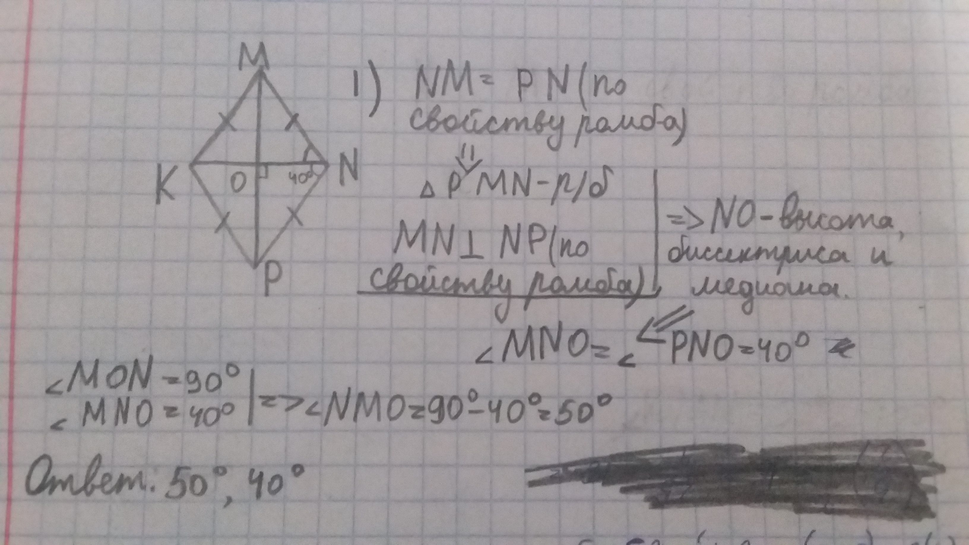 Диагонали ромба ABCD пересекаются в точке О. угол BAD=100°. найдите углы треугольника AOD.