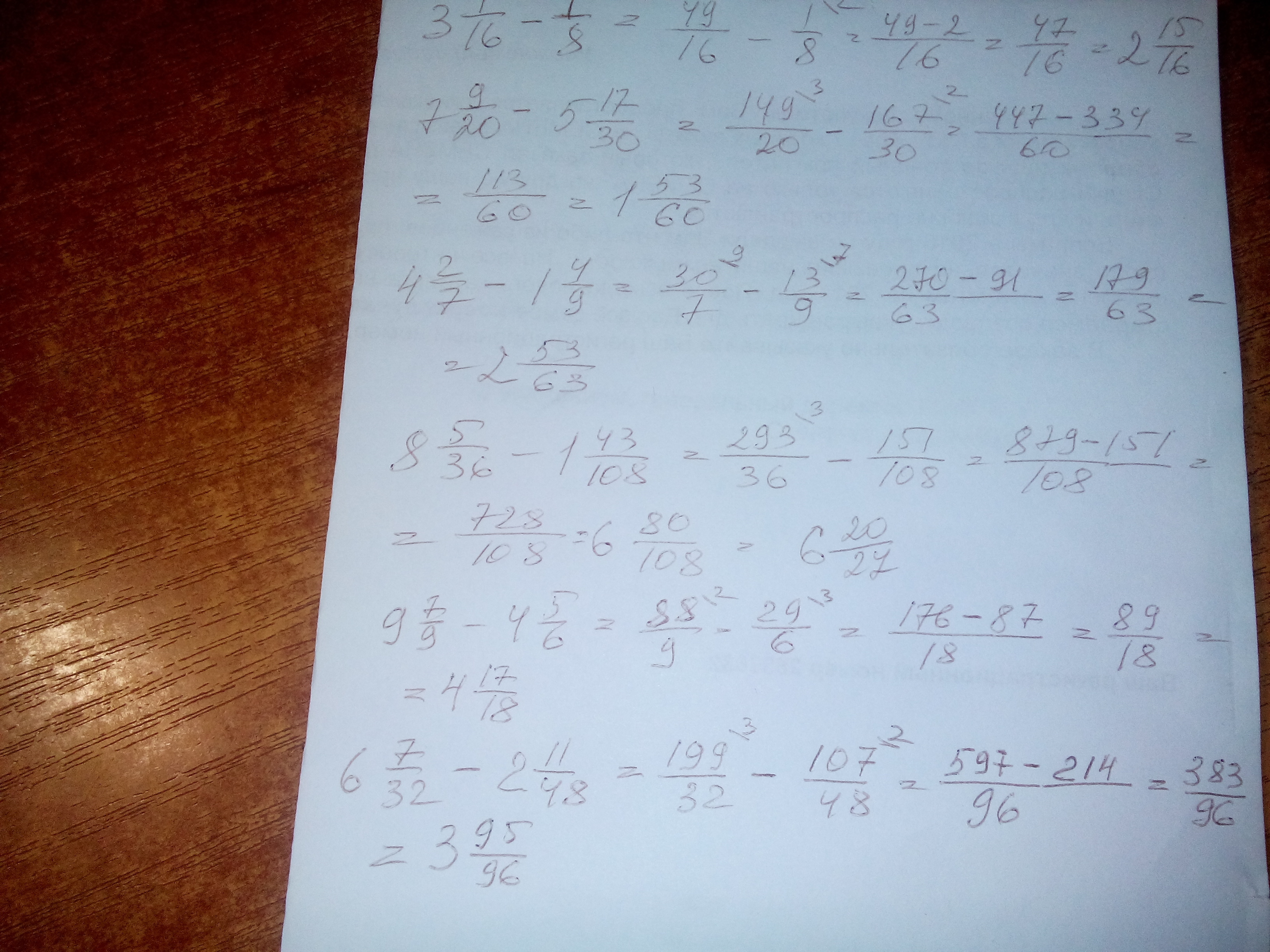 ПОМОГИТЕ , СРОЧНО , СЕЙЧАС , СЕГОДНЯ ,СПАСИБО выполните вычитание 3целых 1/16 - 1/8 , 7 целых 9/20 - 5 целых 17/30 , 4целых 2/7 - 1 целая 4/9 ,8целых 5/36 - 1 целая 43/108 , 9 целых 7/9 - 4 целых 5/6 , 6 целых 7/32 - 2 целых 11/48