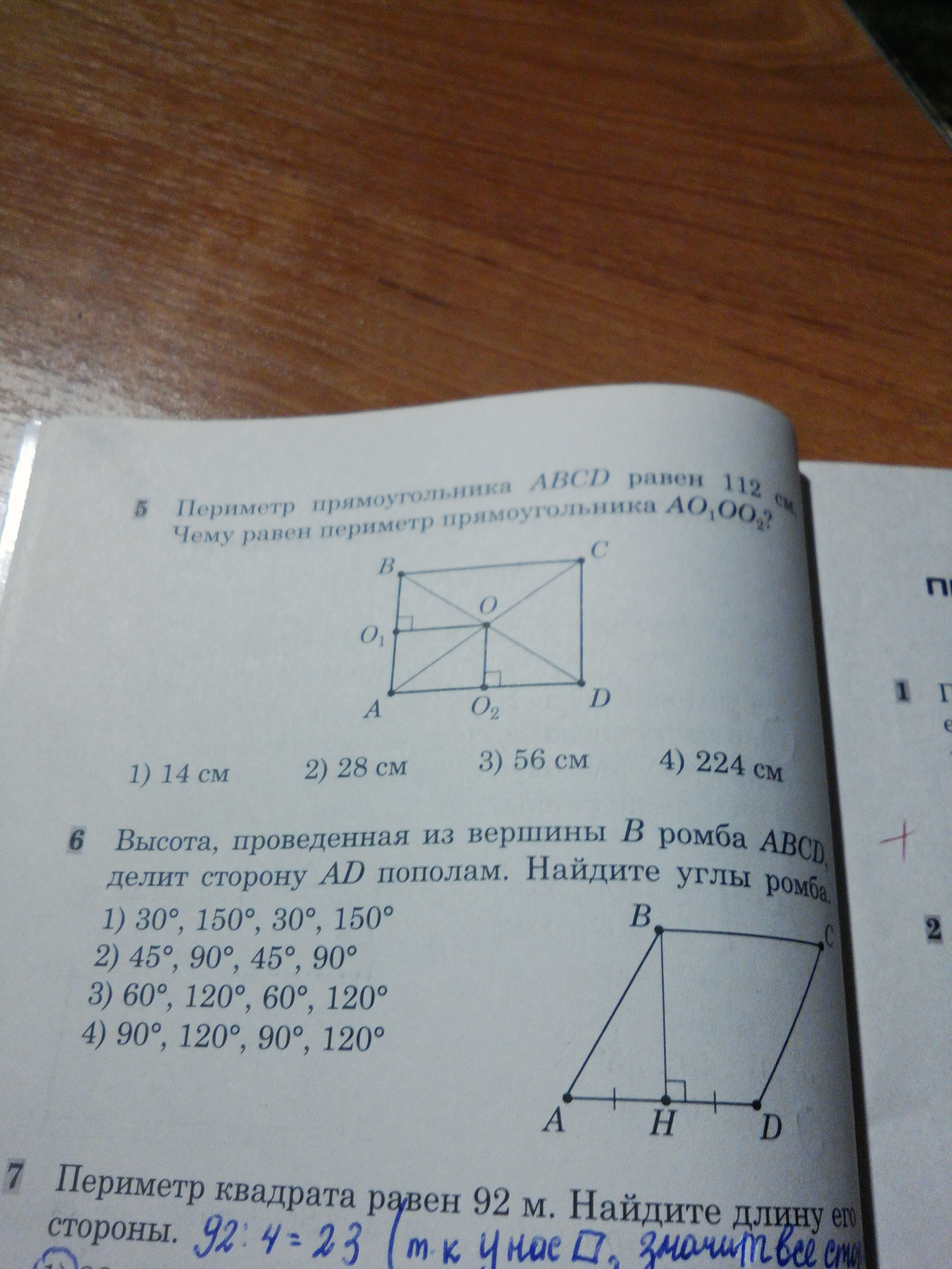 #6. т.к. это ромб, то все стороны равны, получается AH=1/2*AB, получается если катет равен половине гиппотенузы, то угол между ними будет 30º.