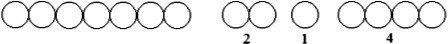 Имеется цепочка, в ней достаточно распилить одно - третье с края звено. При этом образуются три куска, в которых 1, 2 и 4 звена.