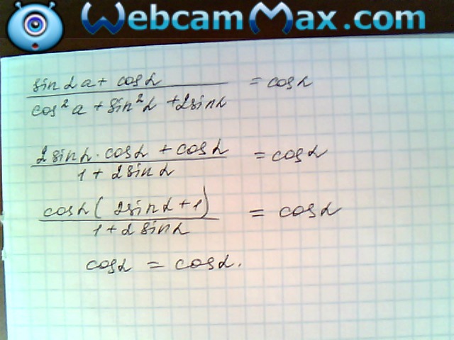 (2cos a sin a+cos a)/(1+2sin a)=cos a (2sin a+1)/(1+2sin a)=cos a