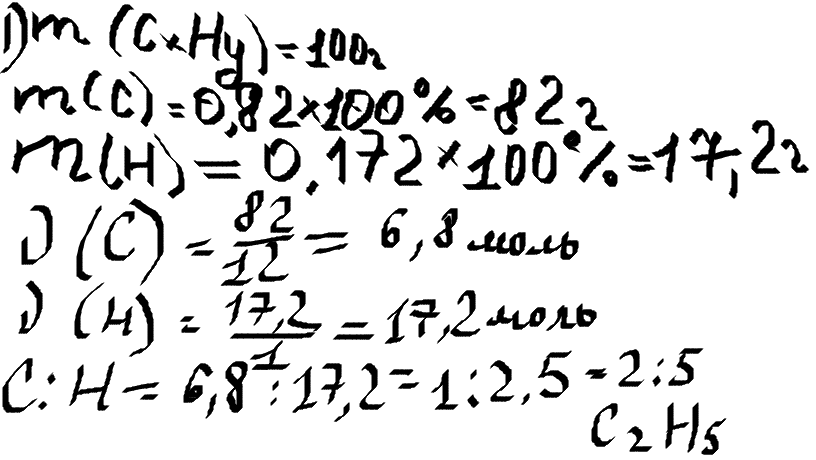 Массовые доли элементов в соединении составляют углерода 82,8 %, водорода 17,2 %. Относительная плотность паров этого вещества по водороду равна 29Ю Найти формулу этого соединения))) ПОМОгИТЕ)))