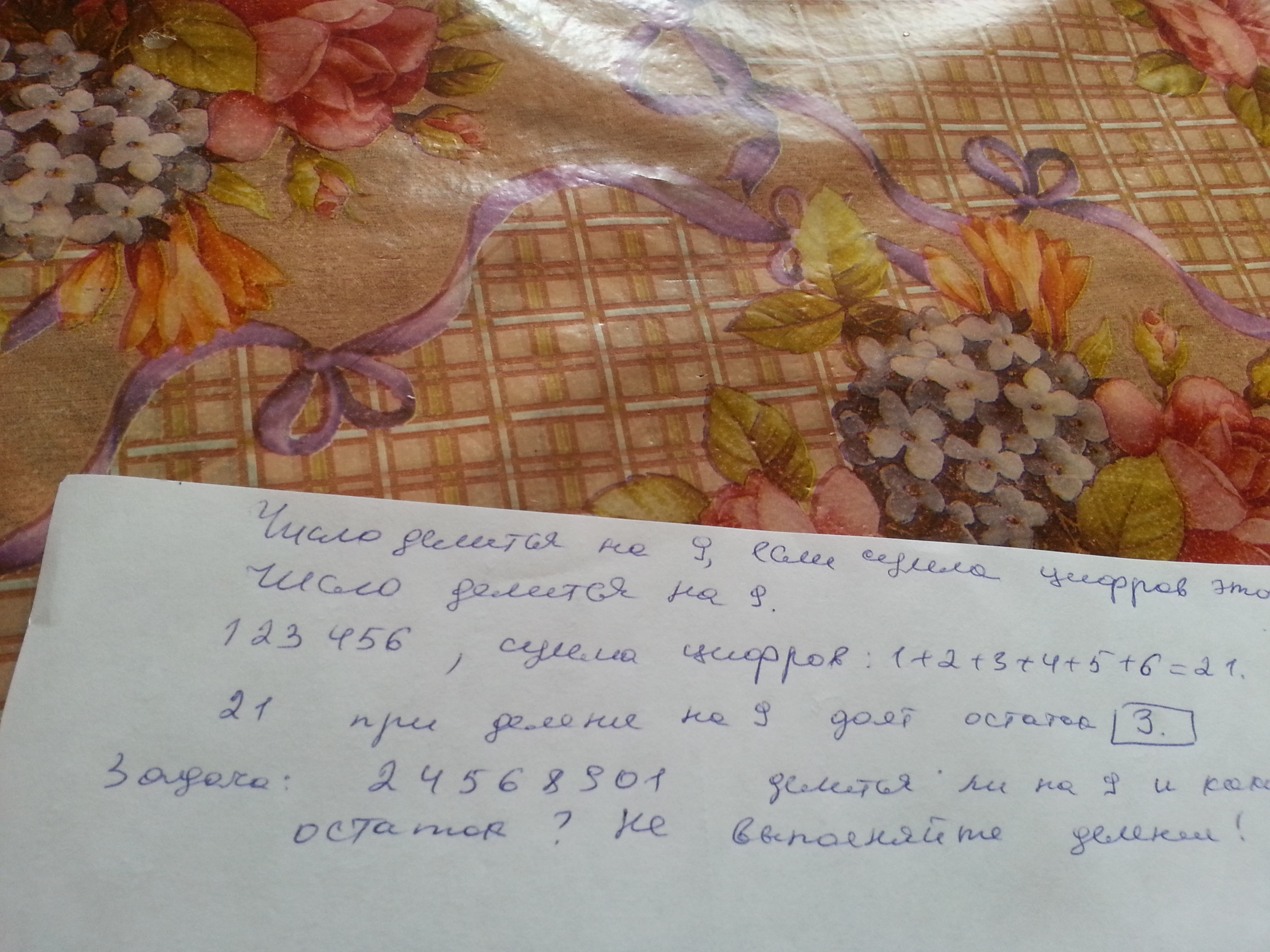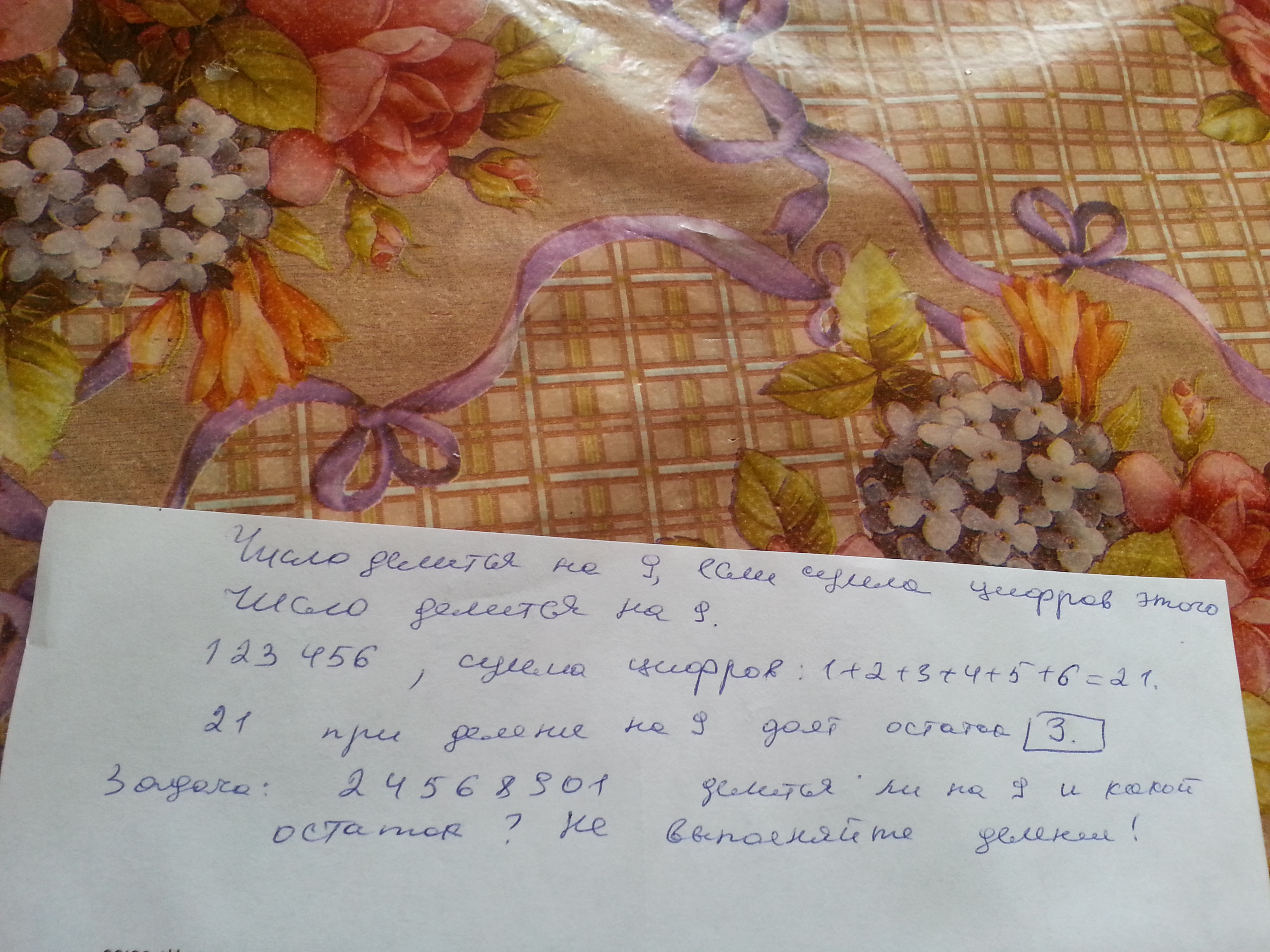 найдите остаток от деления числа 123456 на 9 не выполняя непосредственно составьте аналогичное задание