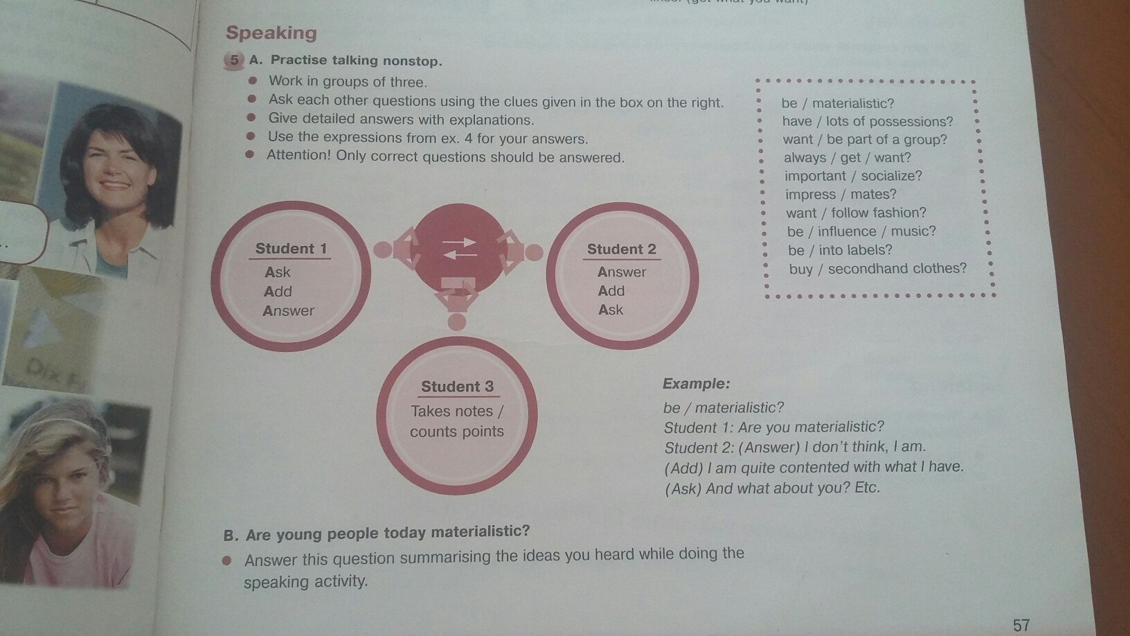 Нужно работать втроём, задавая друг другу вопросы со словами из рамочки справа. Ответить на все вопросы со всеми деталями и объяснениями, используя выражения из номера 4. Не знаю, как тебе помочь