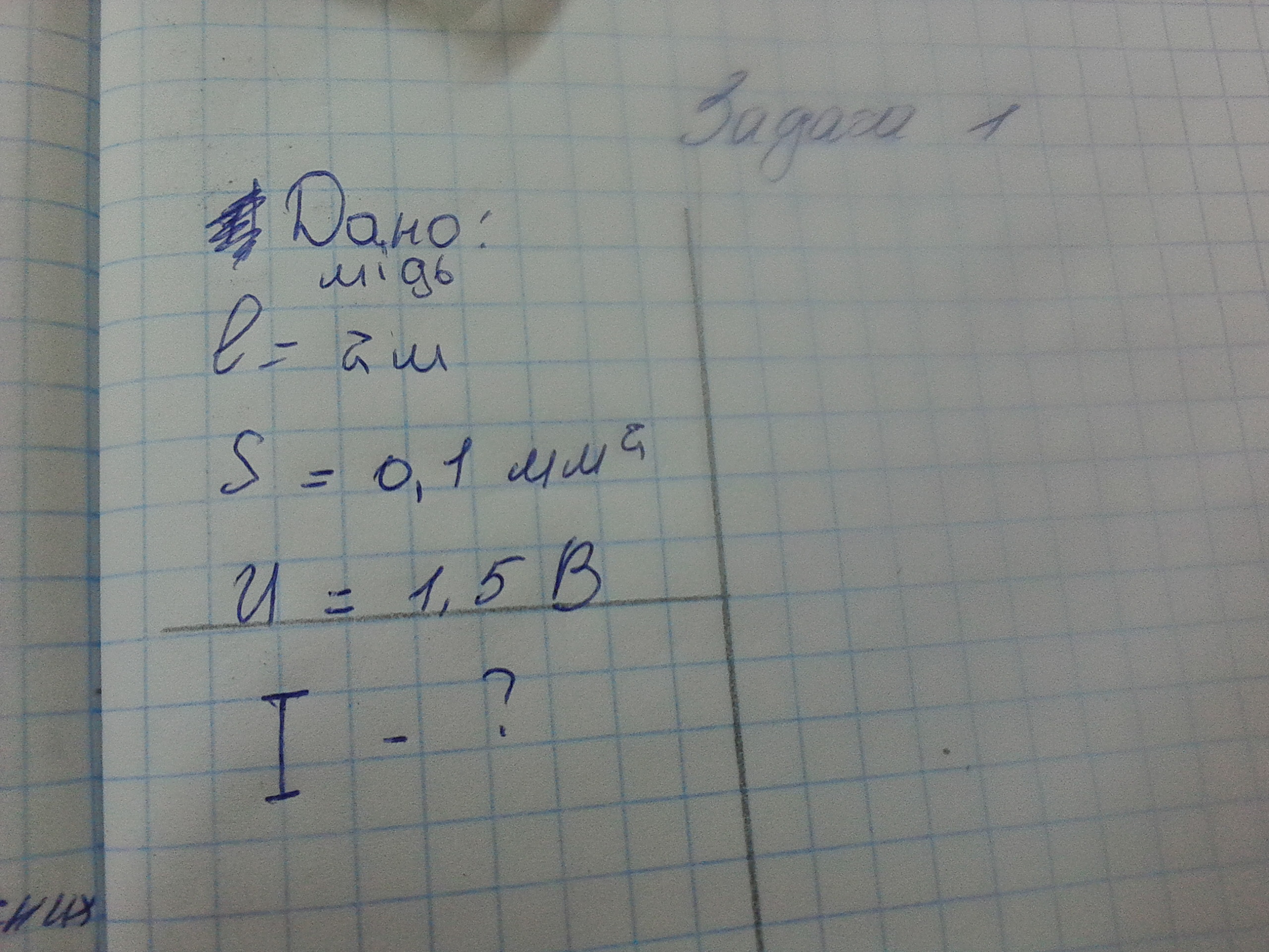 L=2 м S=0.1 мм² U=1.5 B po=0.017 Ом*мм²/м I=?