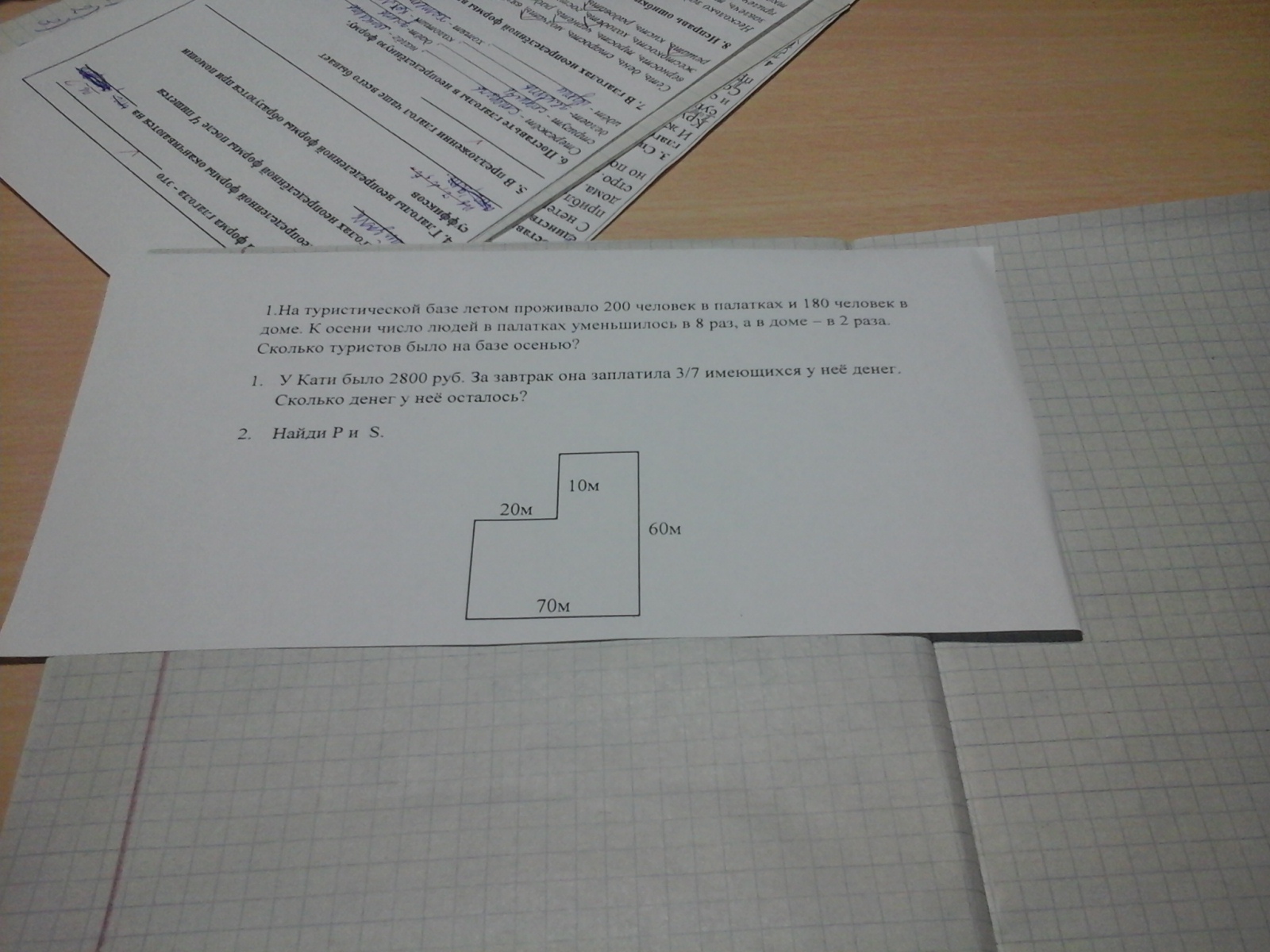 3) Вычислим периметр большого прямоугольника, он равен 2*(60+70)=260м. Теперь вычислим периметр маленького прямоугольника со сторонами 20 и 10, он равен 60м. Тогда периметр фигуры 260-60=200м.