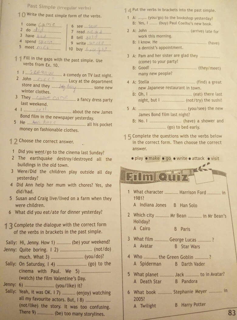 13. 1. was 2. wasn't did 3. did you do 4.went 5. watched 6. did you like . 7. enjoyed 8. wasn't liked 9.were