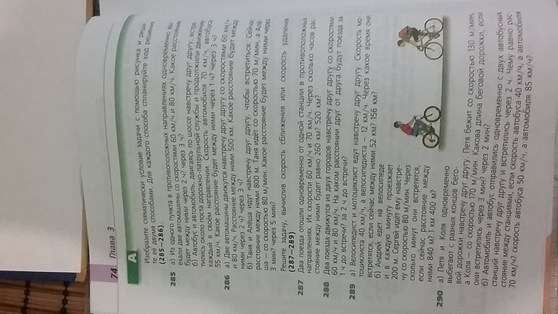 285. а) (60•2)+(80•2)=280(км)-через 2 ч.(60•3)+(80•3)=420(км)-через 3ч.