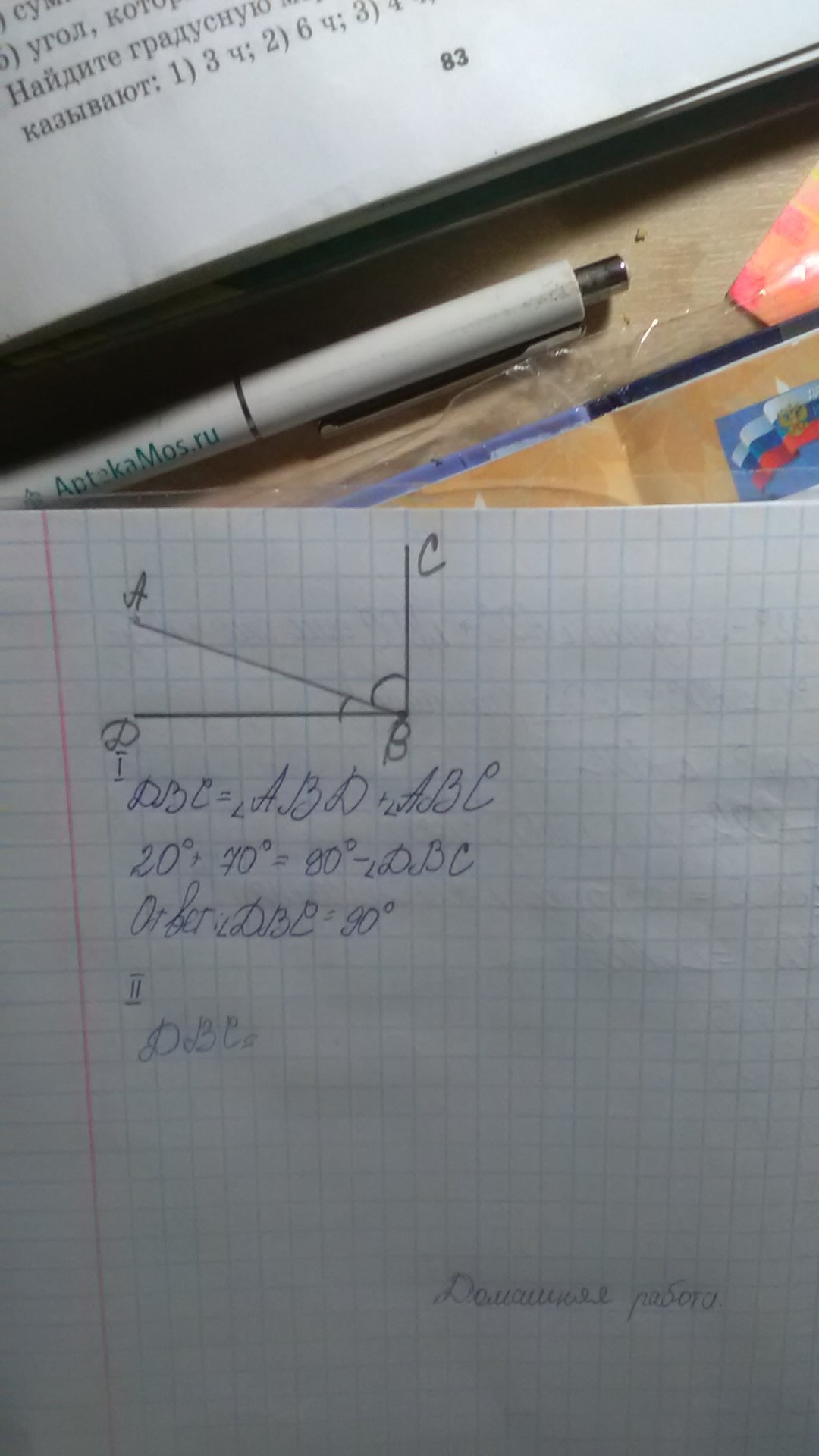 2 способ ∠ DBC =∠ ABC +∠ ABD =70°+20°=90°