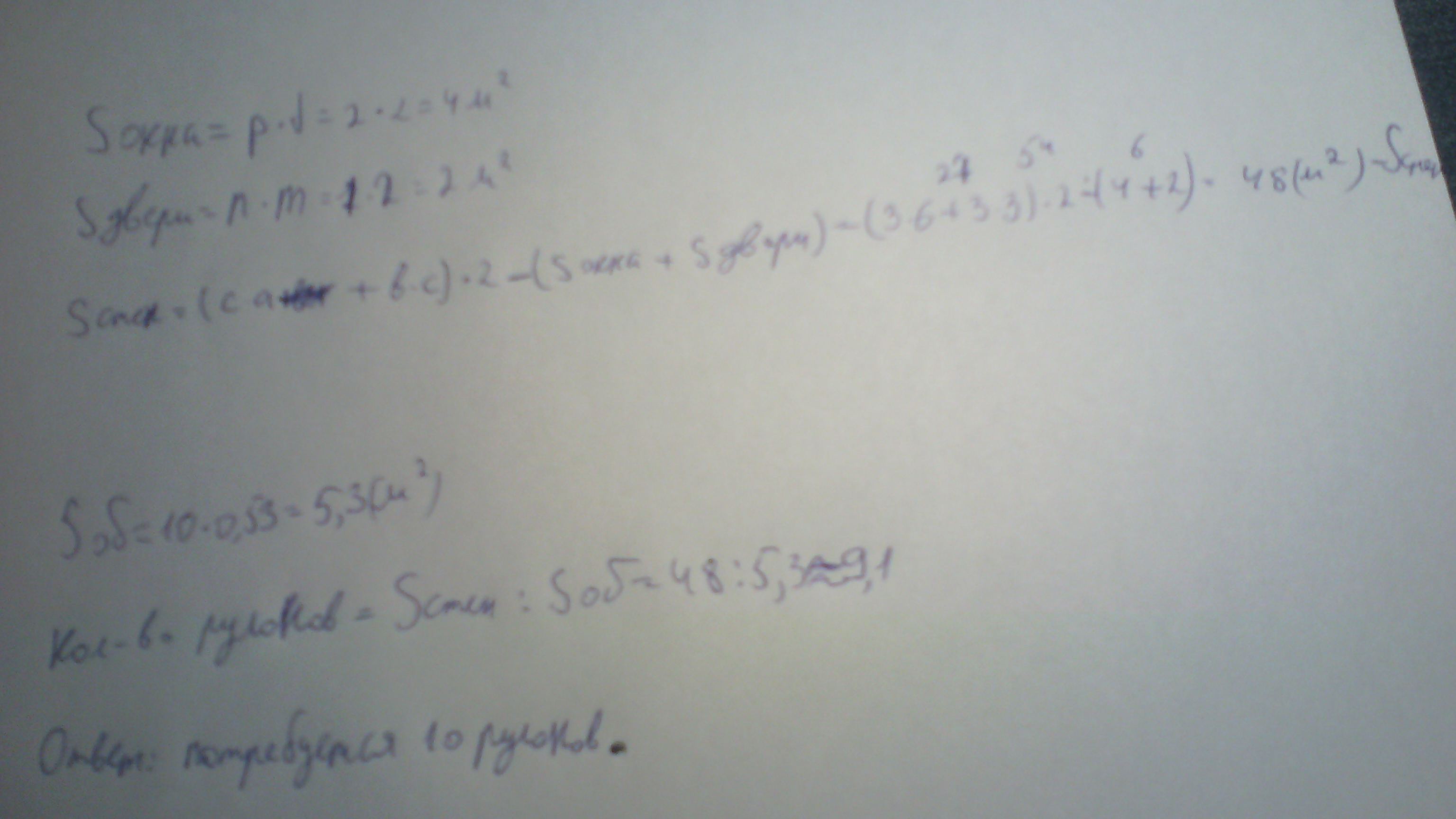 рассчитайте сколько потребуется обоев для оклейки комнаты , если длина одного рулона 10 м при ширине 53 см, а комната имеет следующие размеры:(на фото) ПОЖАЛУЙСТА ОТВЕТЬТЕ КАК НА КАРТИНКЕ НАПИСАНО!!