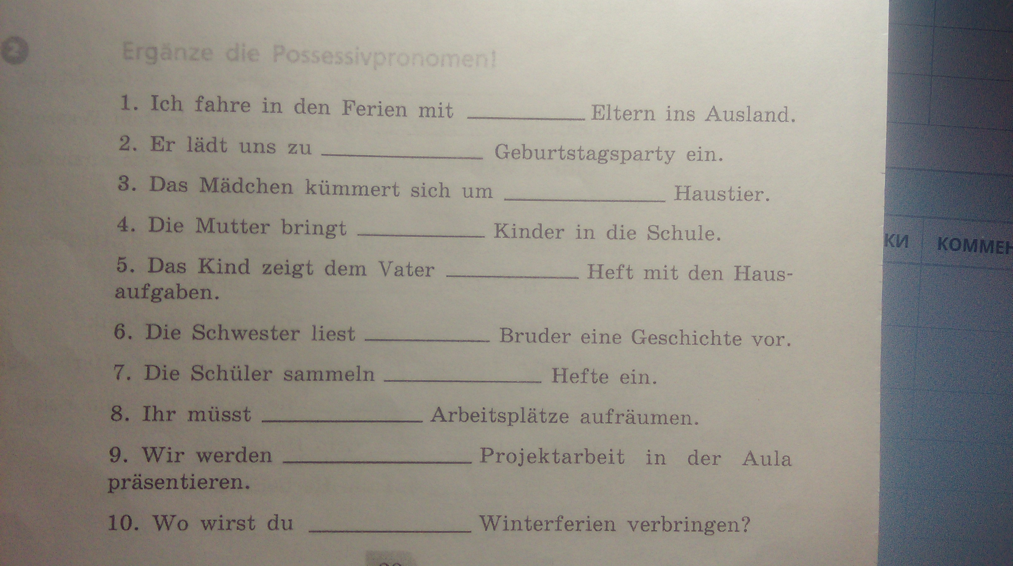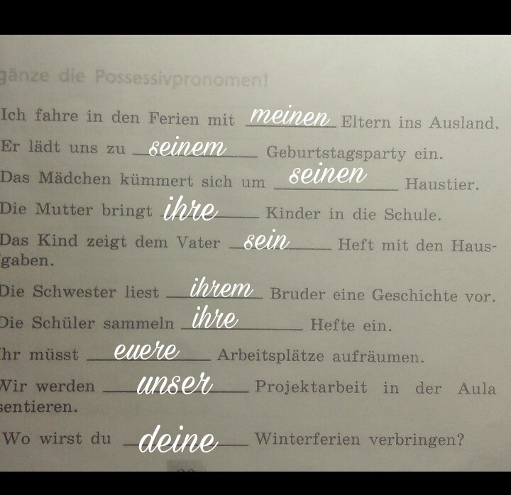 Держи! Заранее себе перепиши табличку с притяжательными местоимениями. Удачи!