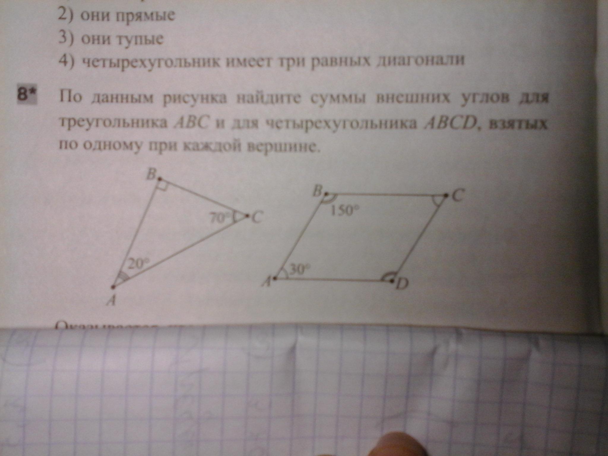 2)180-30=150° внешние углы при А и С ( по одному внеш.углу)