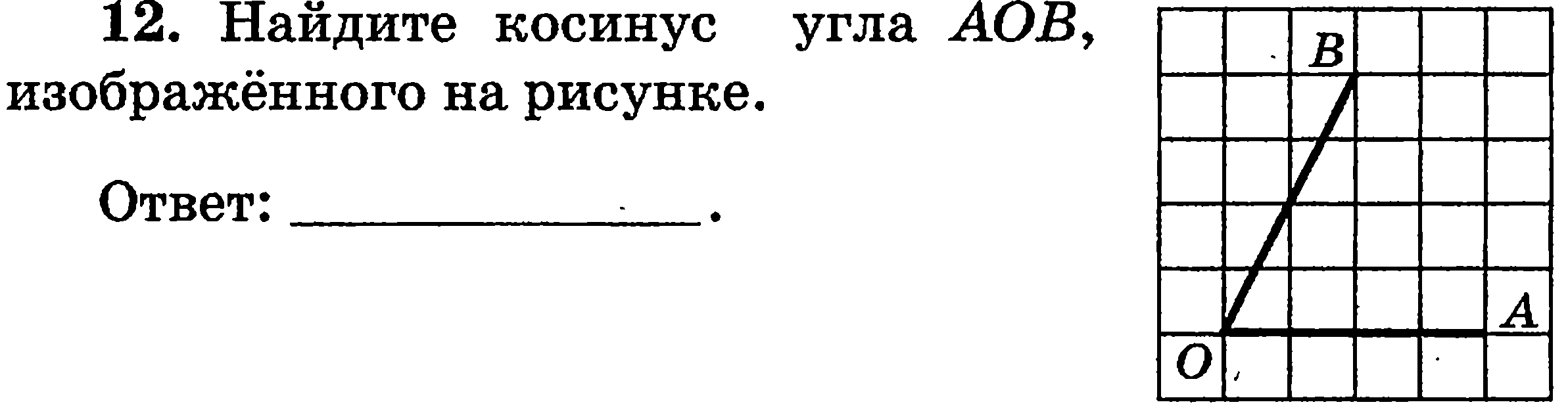нужно провести прямую,таким образом образовав еще одну сторону треугольника.посчитать клетки,затем найти гипотинузу с помощью теоремы пифагора.зате прилежащую сторону поделить на гипотинузу.