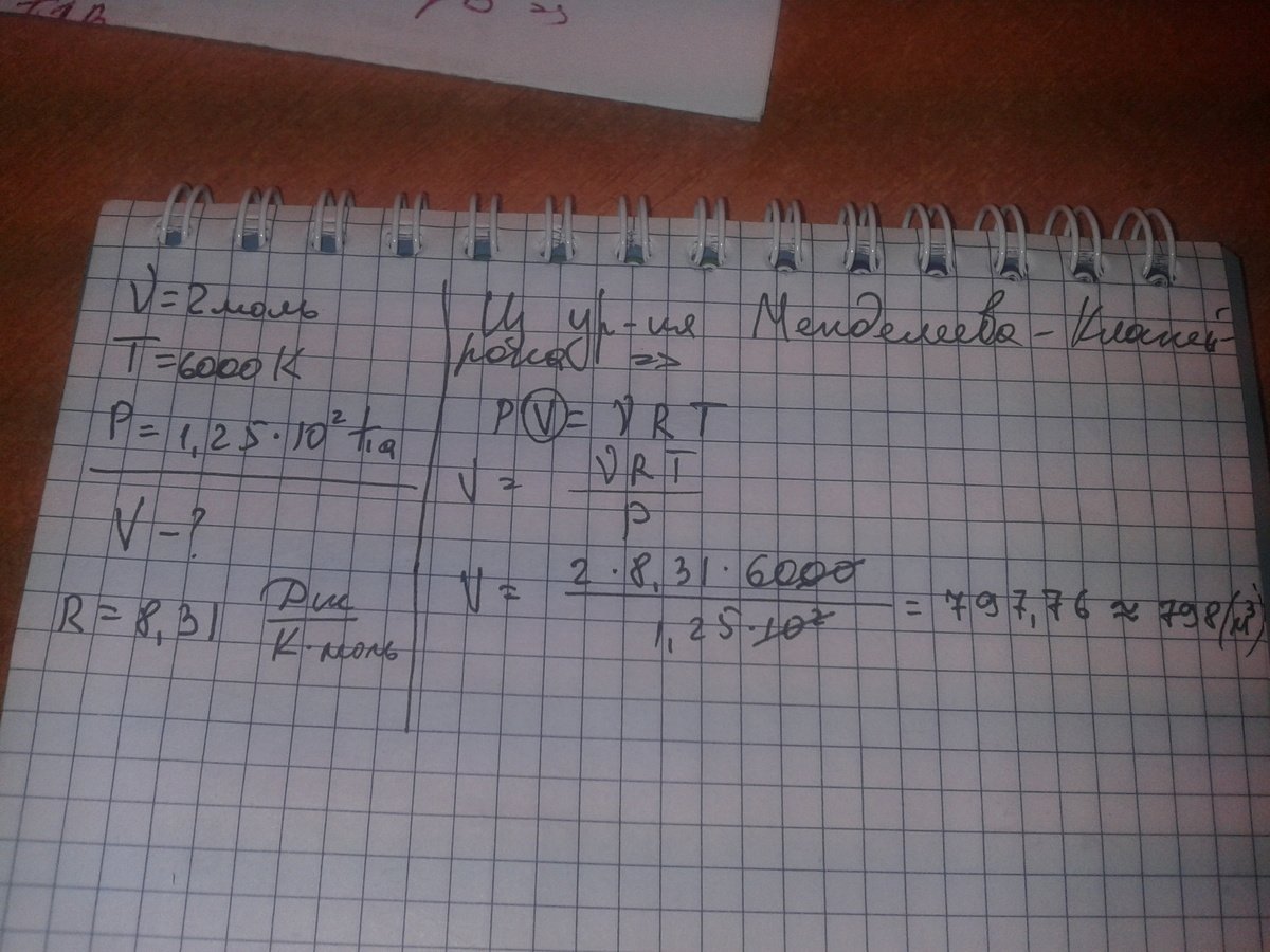 какой обьем занимает два моля идеального газа на поверхности солнца температура 6000к давление 1.25 10 в квадрате ПА
