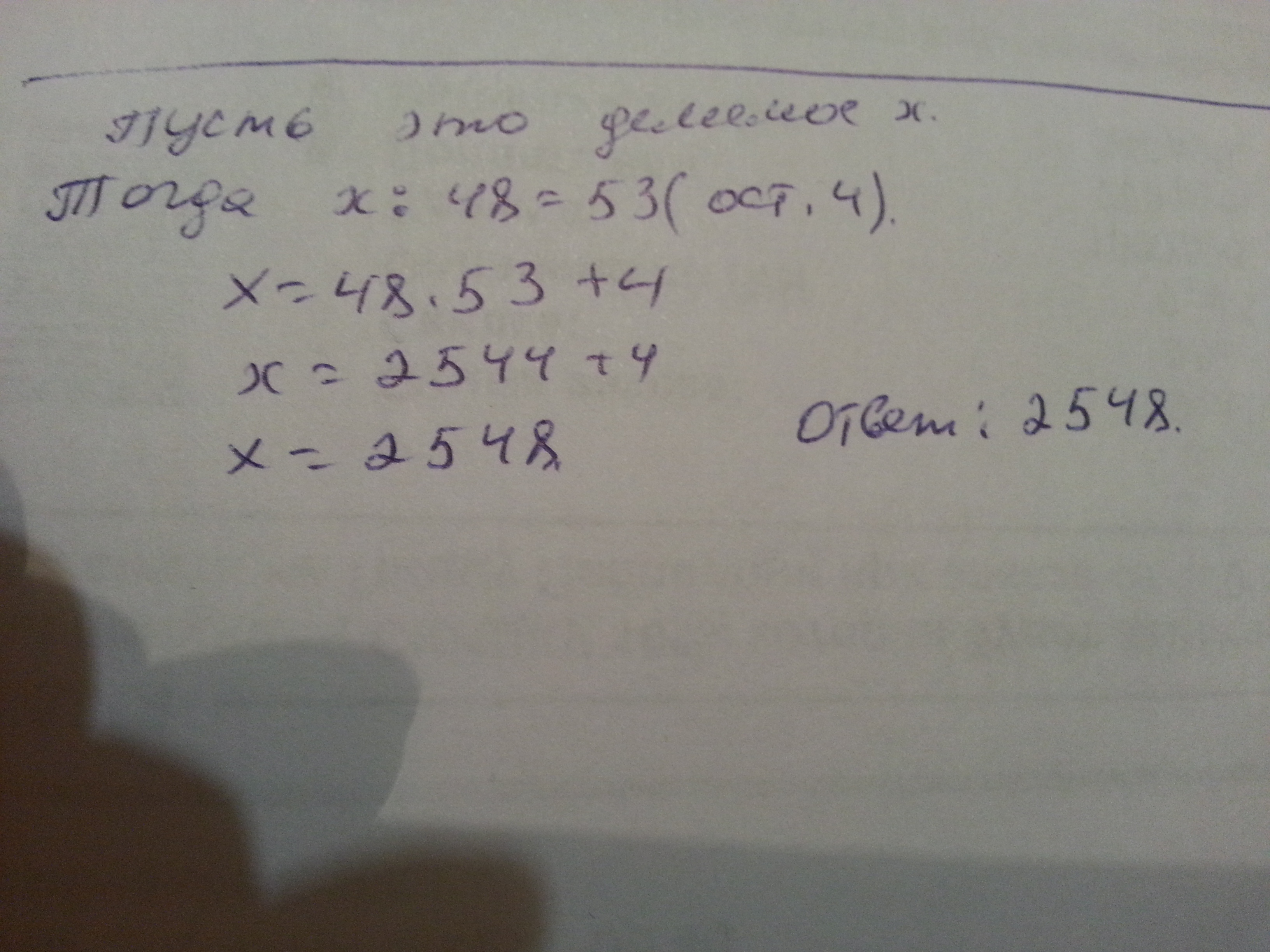 запиши выражения,значения которых равны пропущенным делимым, и найди их значения. неизвестное делим на 48 = 53 и остаток 4
