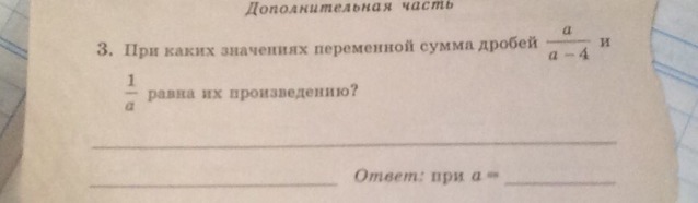 а²/(а²-4а)+а-4/(а²-4а)=а/(а²-4а)