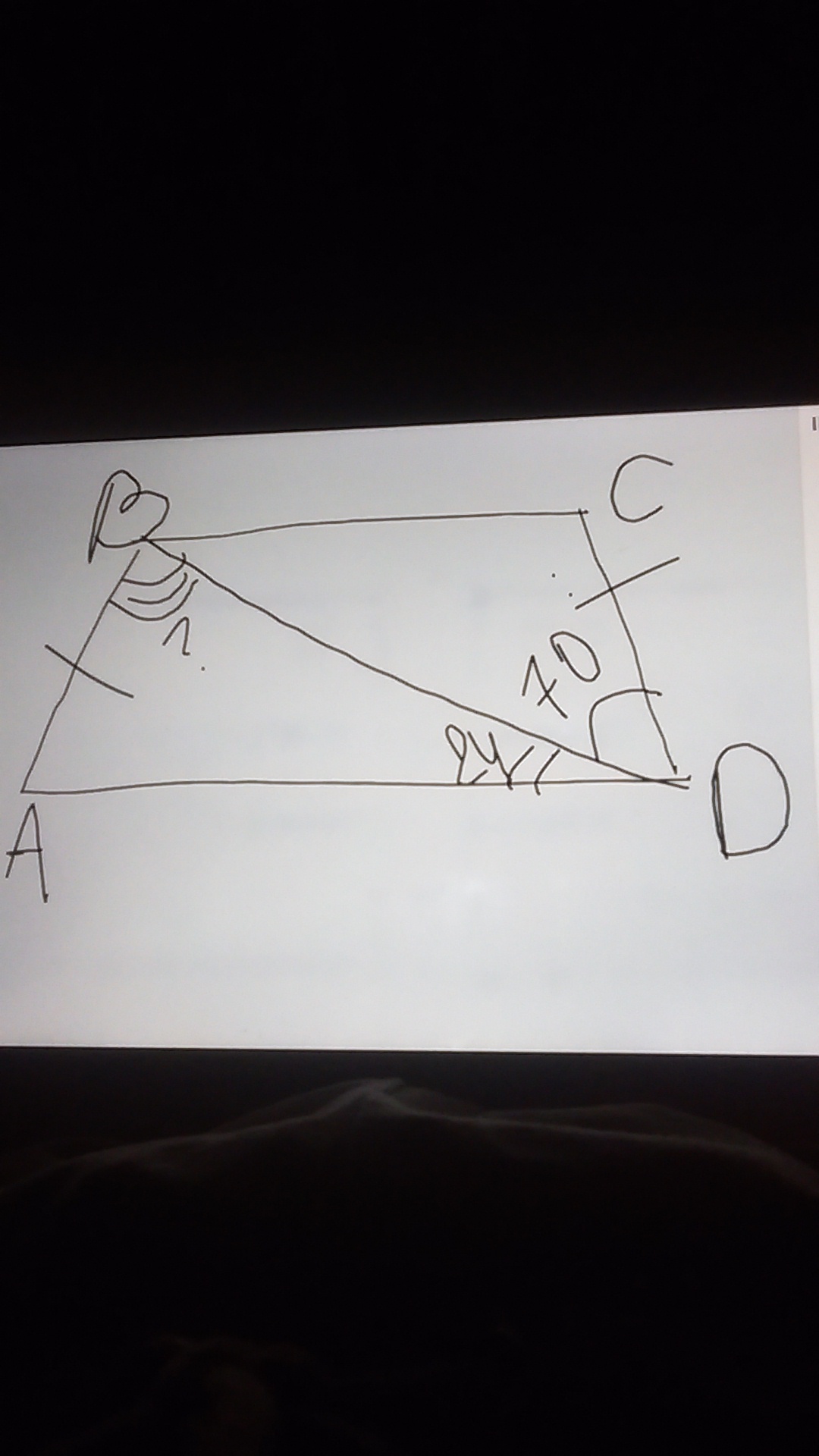 Угол CDA=70+24=94°.Угол С=180-94=86°тк односторонний с углом D при прямых AD и ВС и секущей CD.Угол АВС=углу ВСD тк в равнобедренной трапеции углы при каждом основании равны. Угол DBC=углу ВDA=24° тк накрест лежащие при прямых ВС и АD и секущей ВD. Угол АВD=86-24=62°