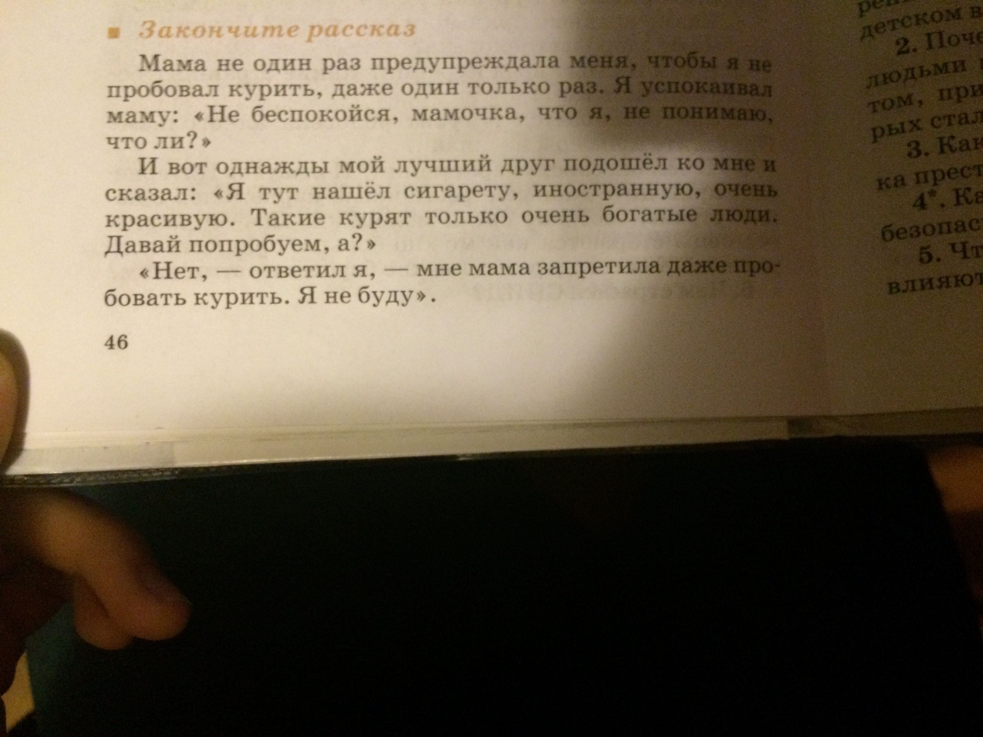 Взрослый и ответственный человек понимает, что в курении нет ничего классного. и лишь слабак может поддаётся соблазну плывет по течению, повторяя за глупыми курильщиками.