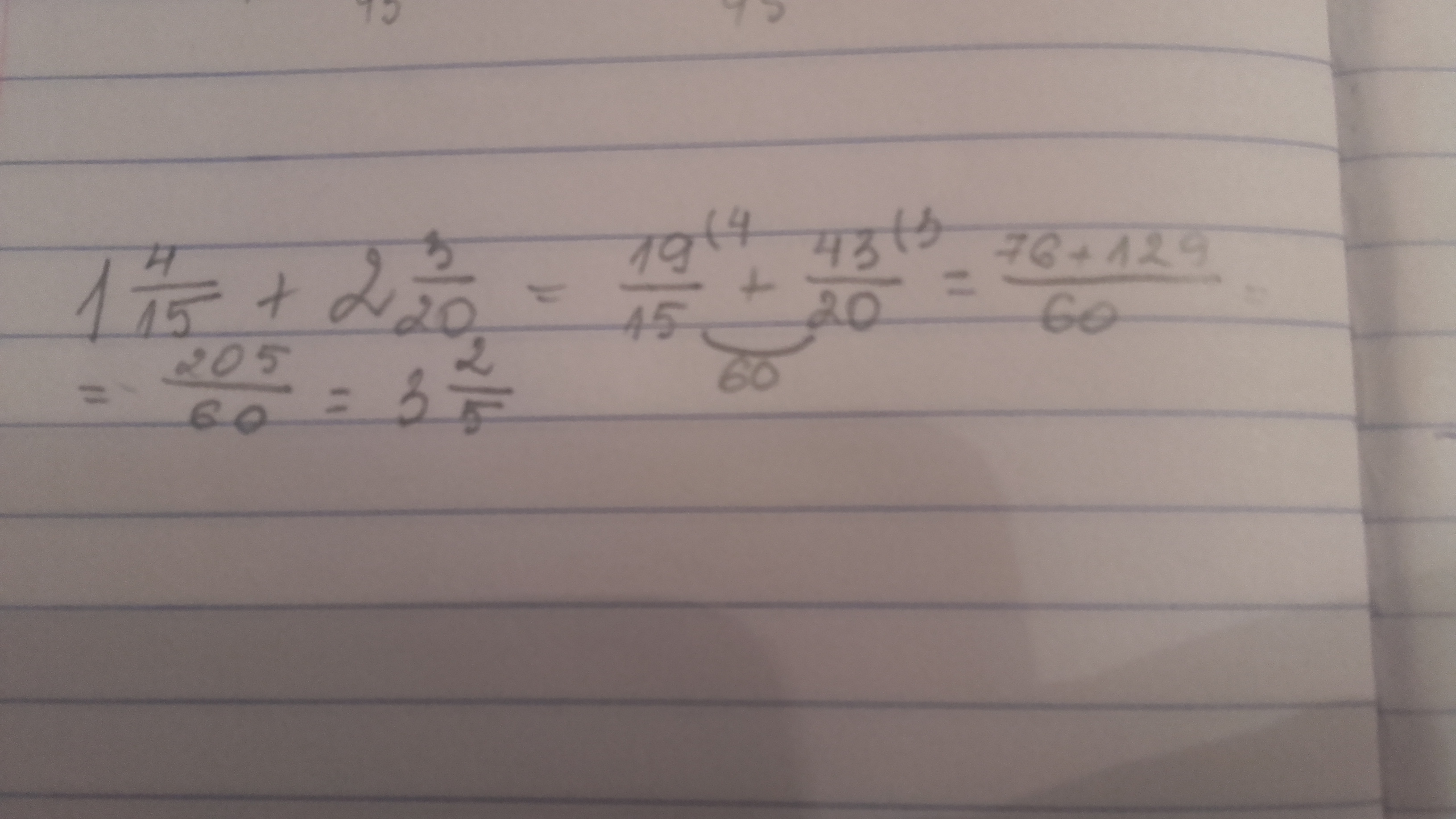 Нужно сначала перевести в неправильную дробь, потом привести к общему знаменателю, в конце получится 3 2/5