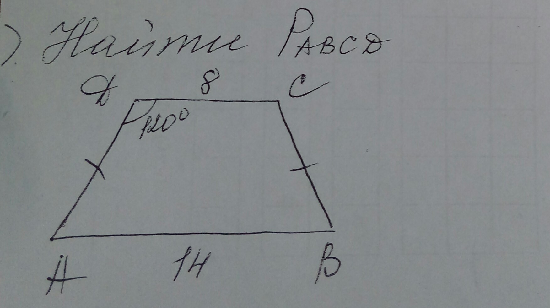 Проведем из вершин D и C высоты DD1, CC1. Получаем четырехугольник DD1C1C, у которого DC=D1C1=8 (т.к. четырехугольник является прямоугольником). Тогда отрезки AD1 и C1B равны между собой, равны (14-8)/2 = 3.