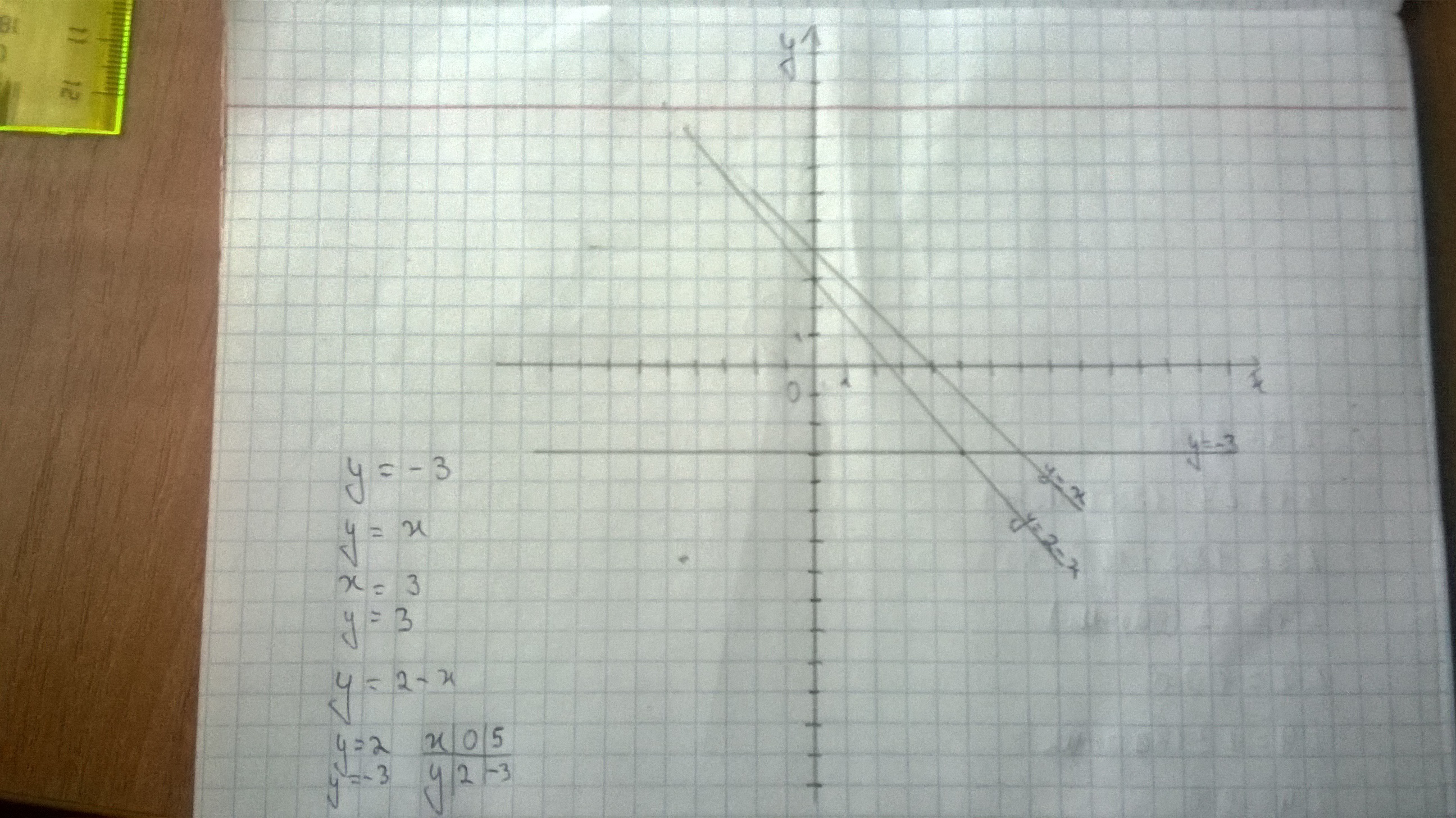 постройте на одном чертеже графики функций y=-3 y=x y=2-x пожалуйстааааа заранее большое спасибо!:))))