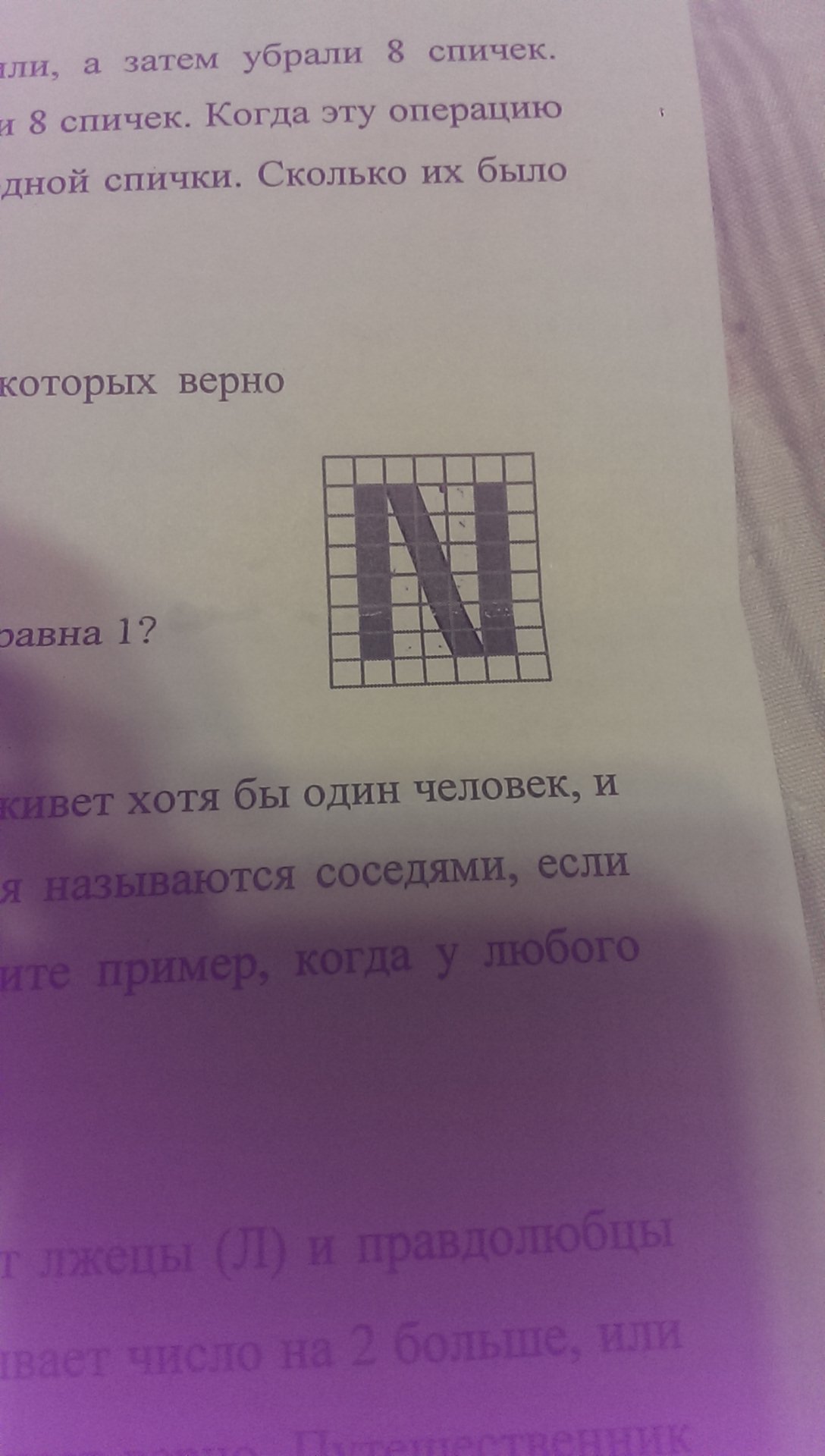 площадь буквы N равна 2·6=12 ед² - это вертикальные палочки , плюс центральная часть, это параллелограмм , площадь которого равна 1·6=6 ед²