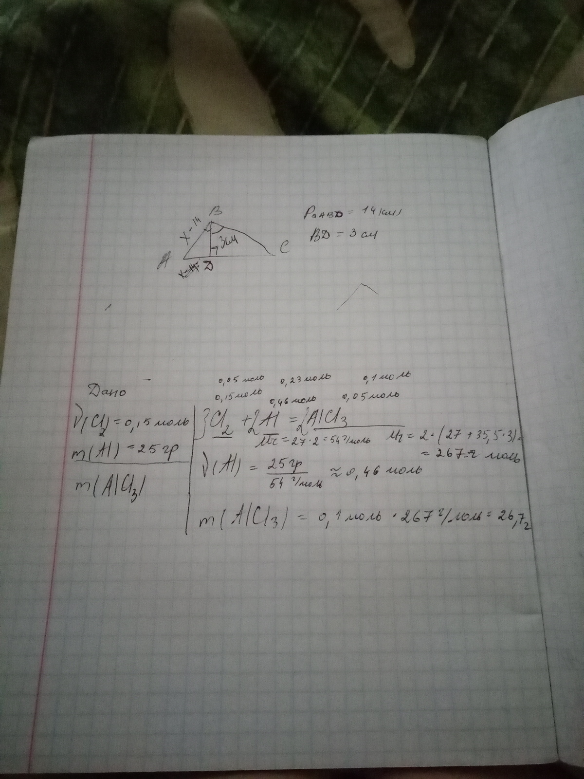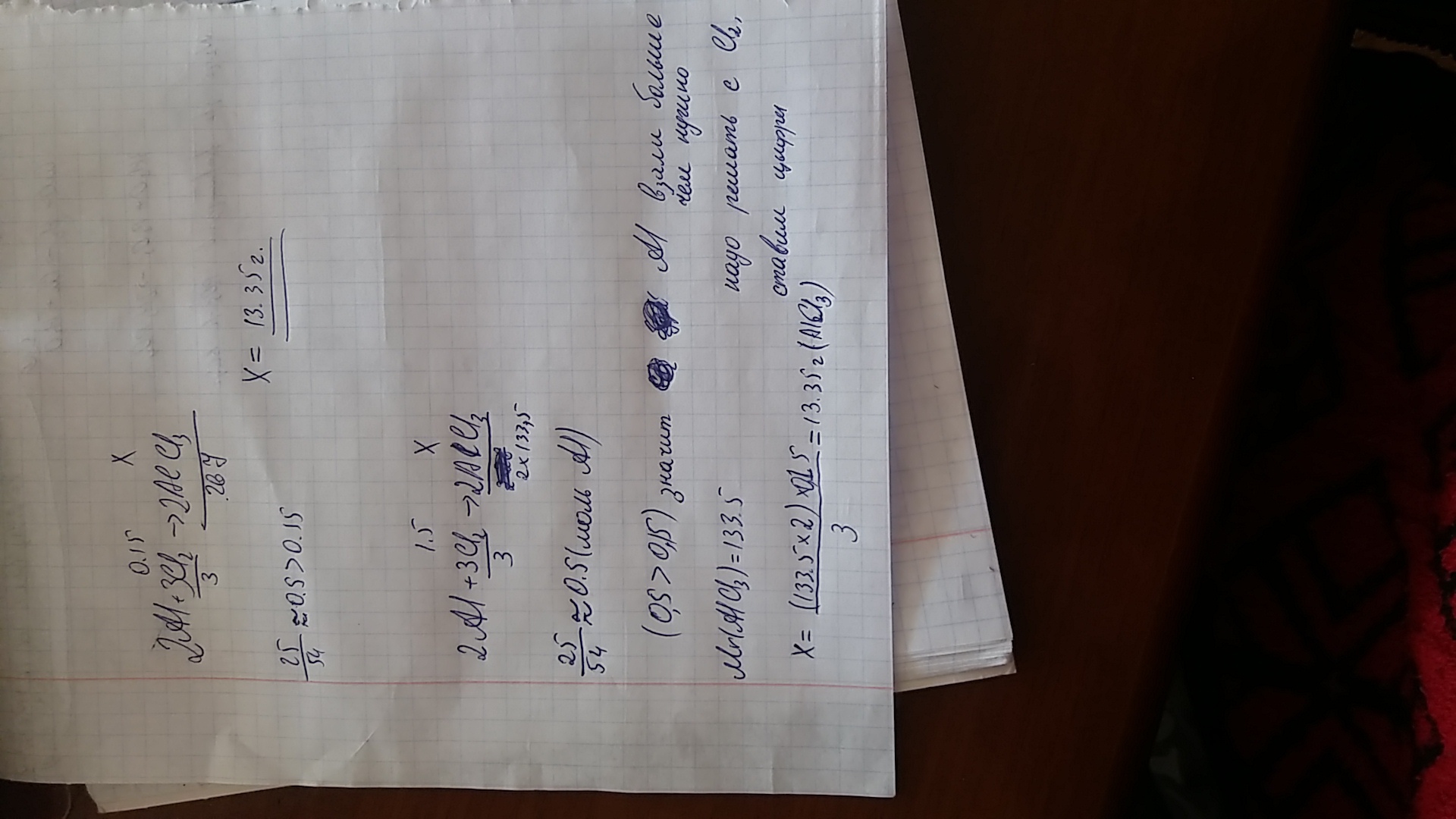 рассчитайте массу хлорида алюминия , если количество вещества хлора вступившего в реакцию равно ,0,15 моль , а масса алюминия равна 25 гр.