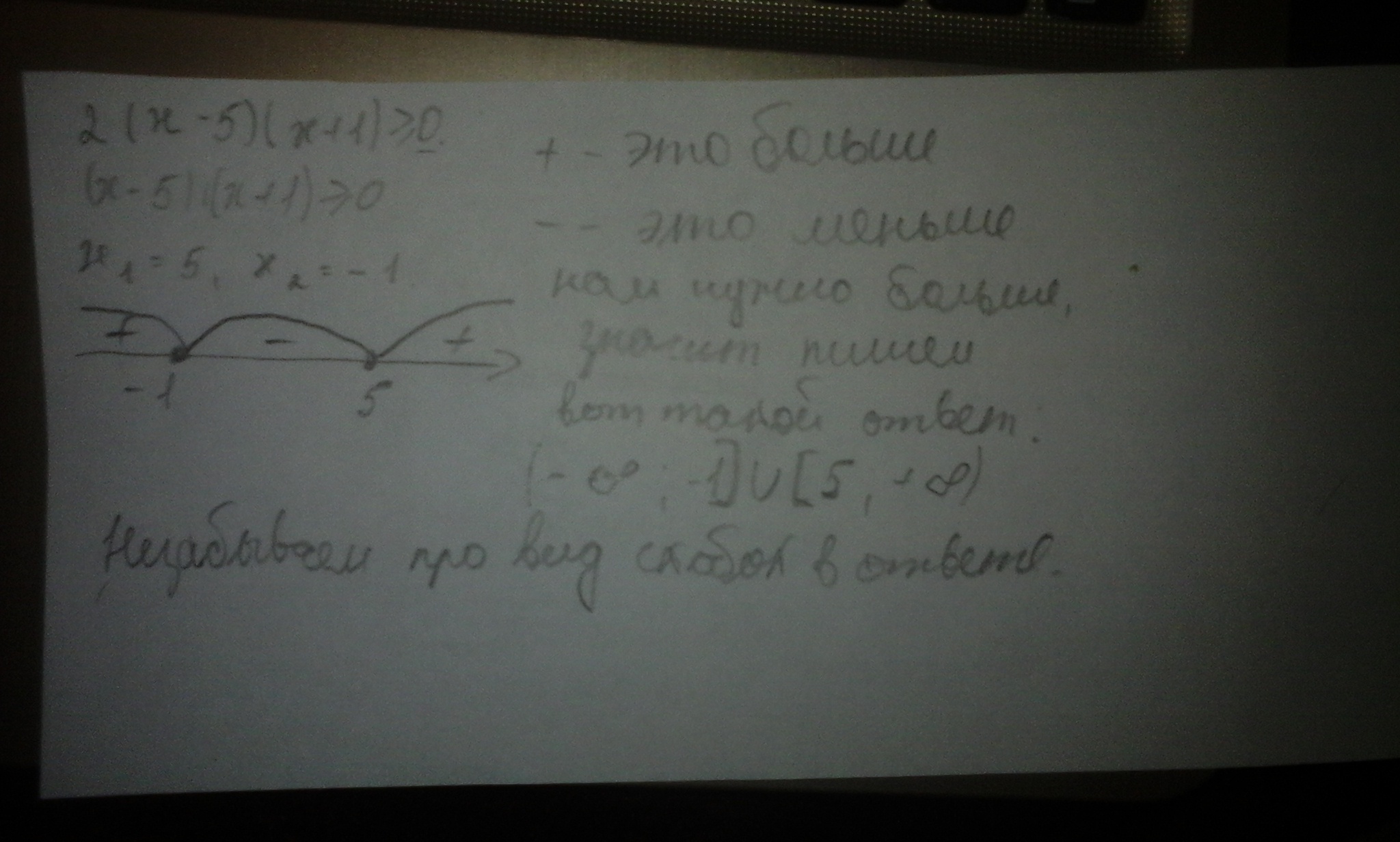 Ответ: x∈(-∞; -1]∪[5; ∞)