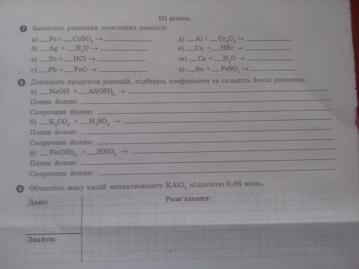 9)Вычислить массу калия в металюминате калия количеством 0,06 моль