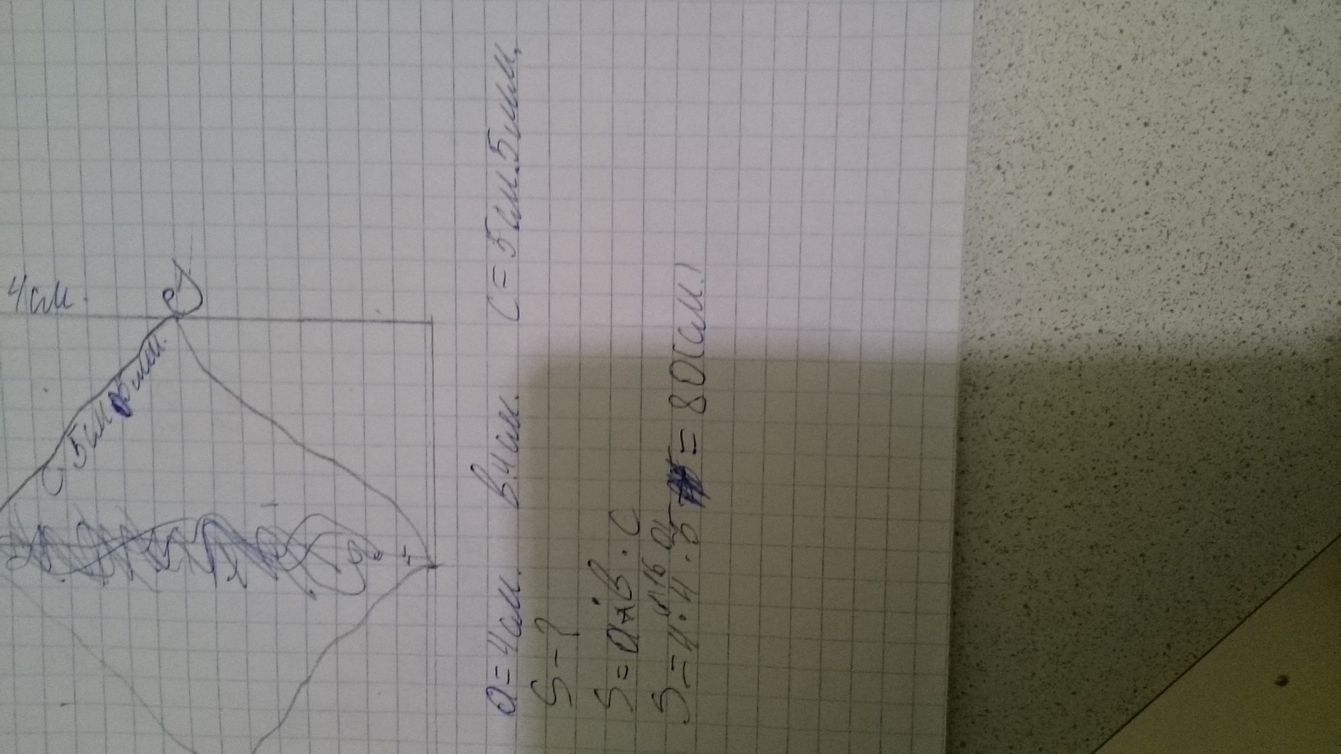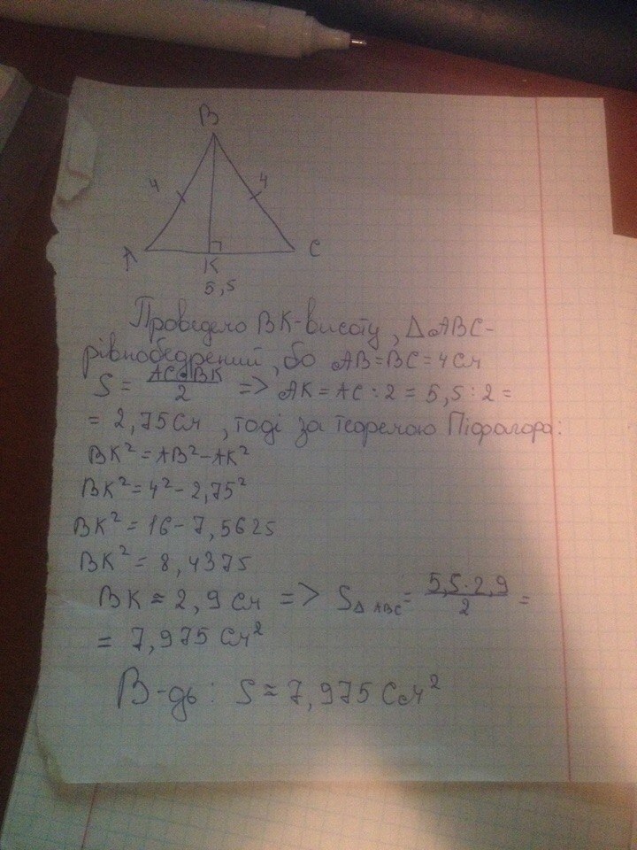 Как найти площадь треугольника сторона 4 сантиметров BC 4 сантиметров 5 сантиметров 5 миллиметров