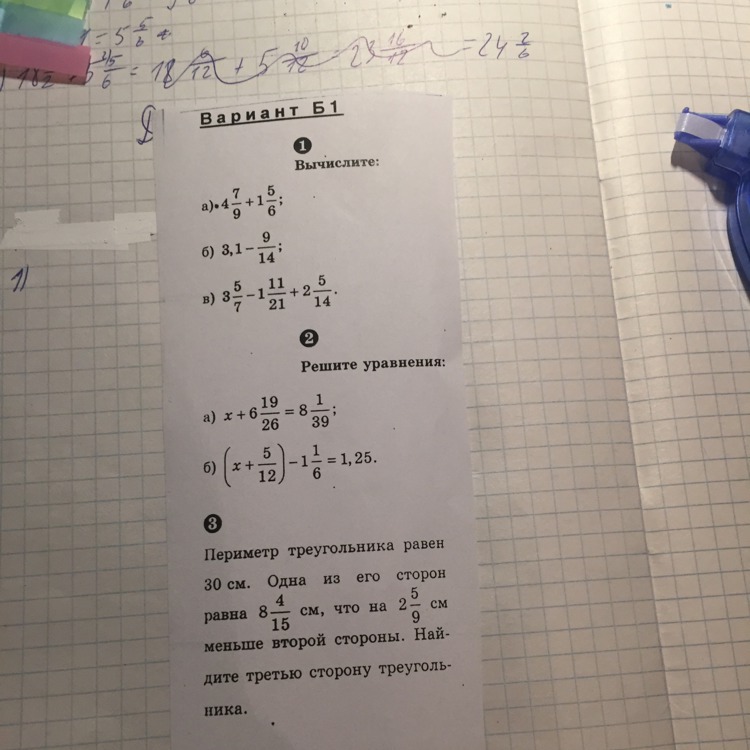 1) а) 4 7/9+1 5/6=(43/9)*2+(11/6)*3=86/18+33/18=119/18=6 11/18