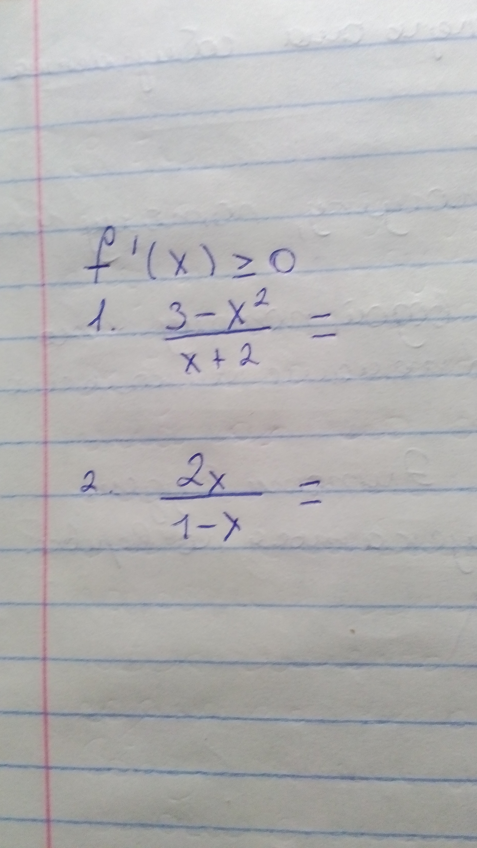 1) ((3-х²)/(х +2))' ≥ 0
