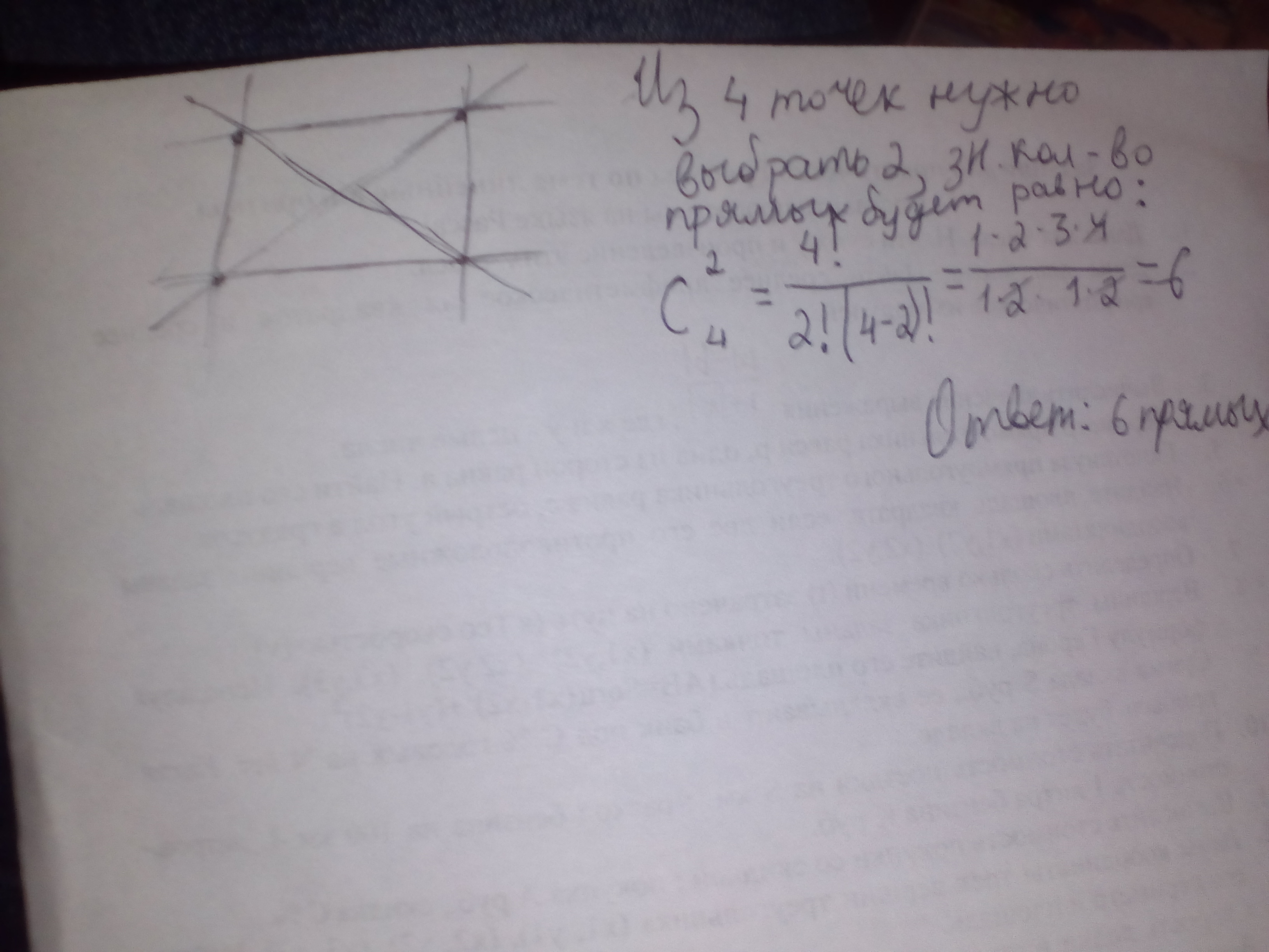 как решить упражнение : Даны четыре точки так , что никакие из них не лежат на одной прямой . Через каждые две точки проведена прямая . Сколько прямых проведено ?