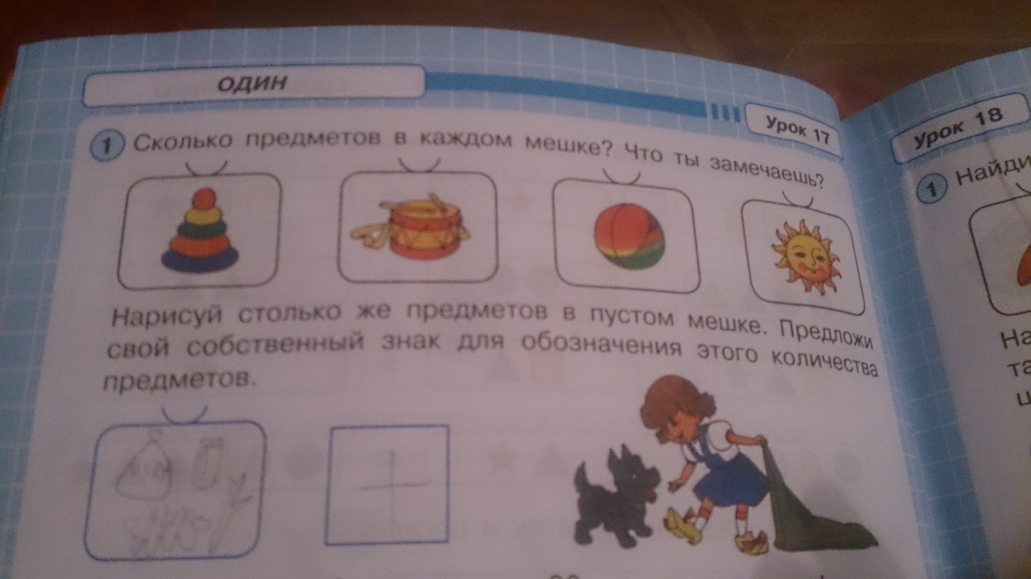 В мешке один объект! 1! Придумывай любой знак! Но один обозначается в математике так: 1.