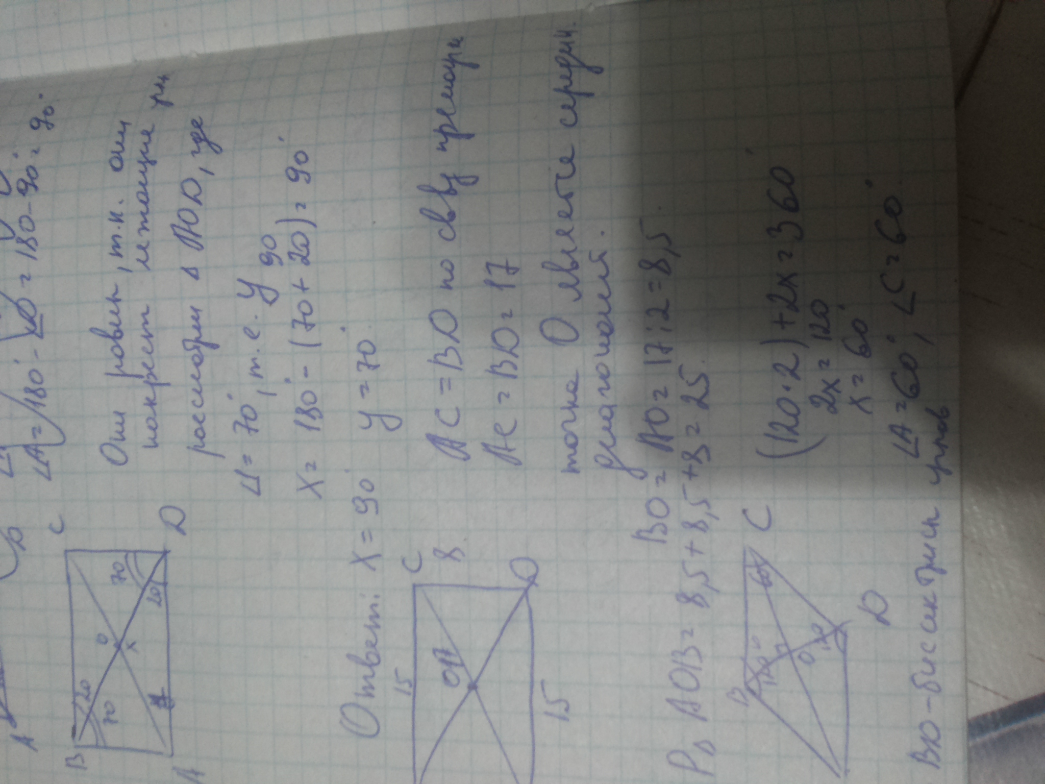 ΔBOC равнобедренный (диагонали равны и их половинки тоже)