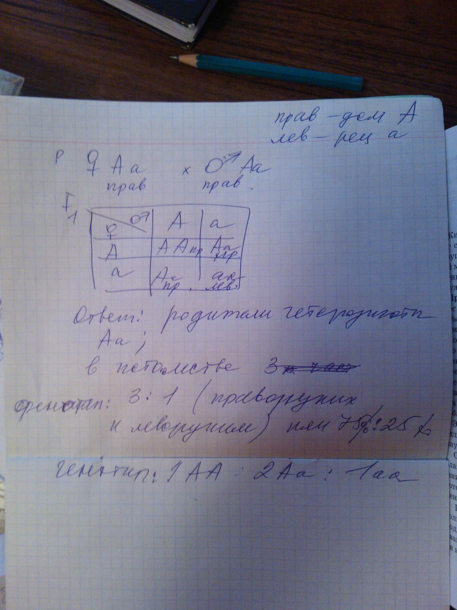 генотип матери Аа, отца Аа, детей правши: АА,Аа,Аа. левша аа