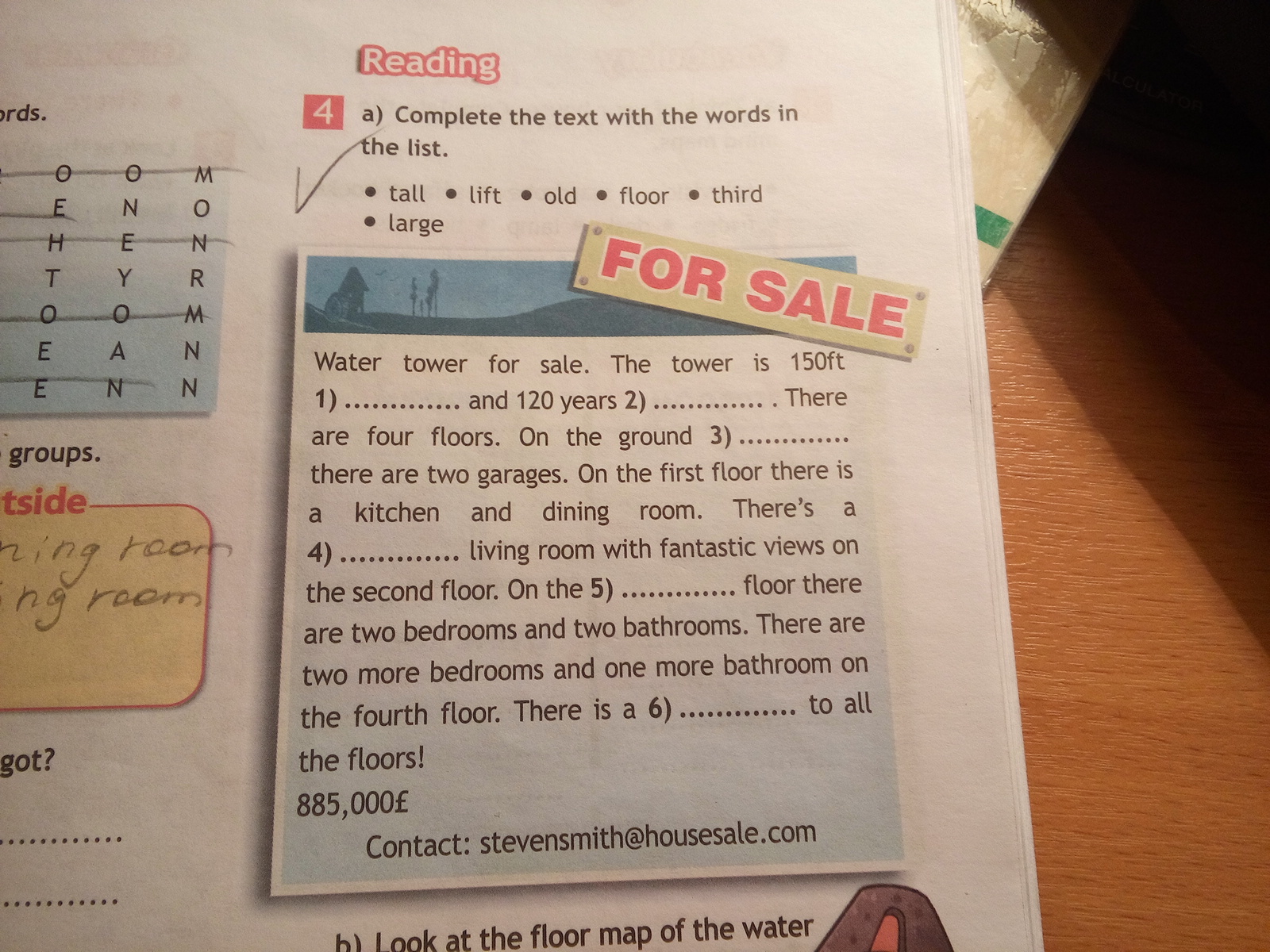 1)tall; 2)old; 3)floor; 4)large; 5)third; 6)lift.