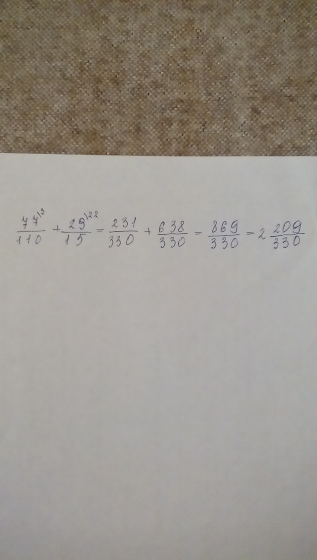 77/110+29/15=21+58/30=79/30=2 целых 19/30