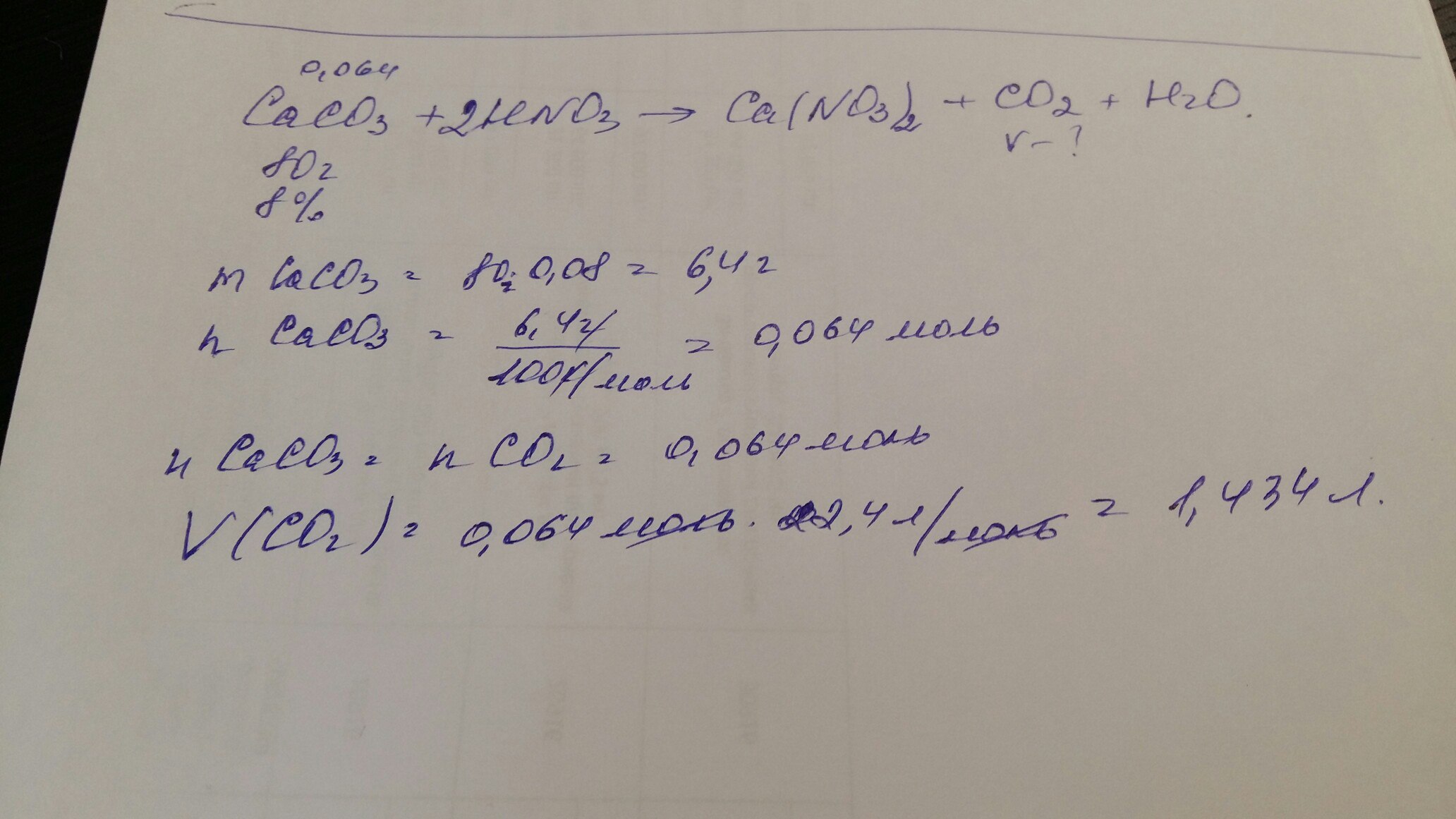 какой обьем СО2 выделился при взаимодействии 80 г 8% раствора карбоната кальция с азотной кислотой?