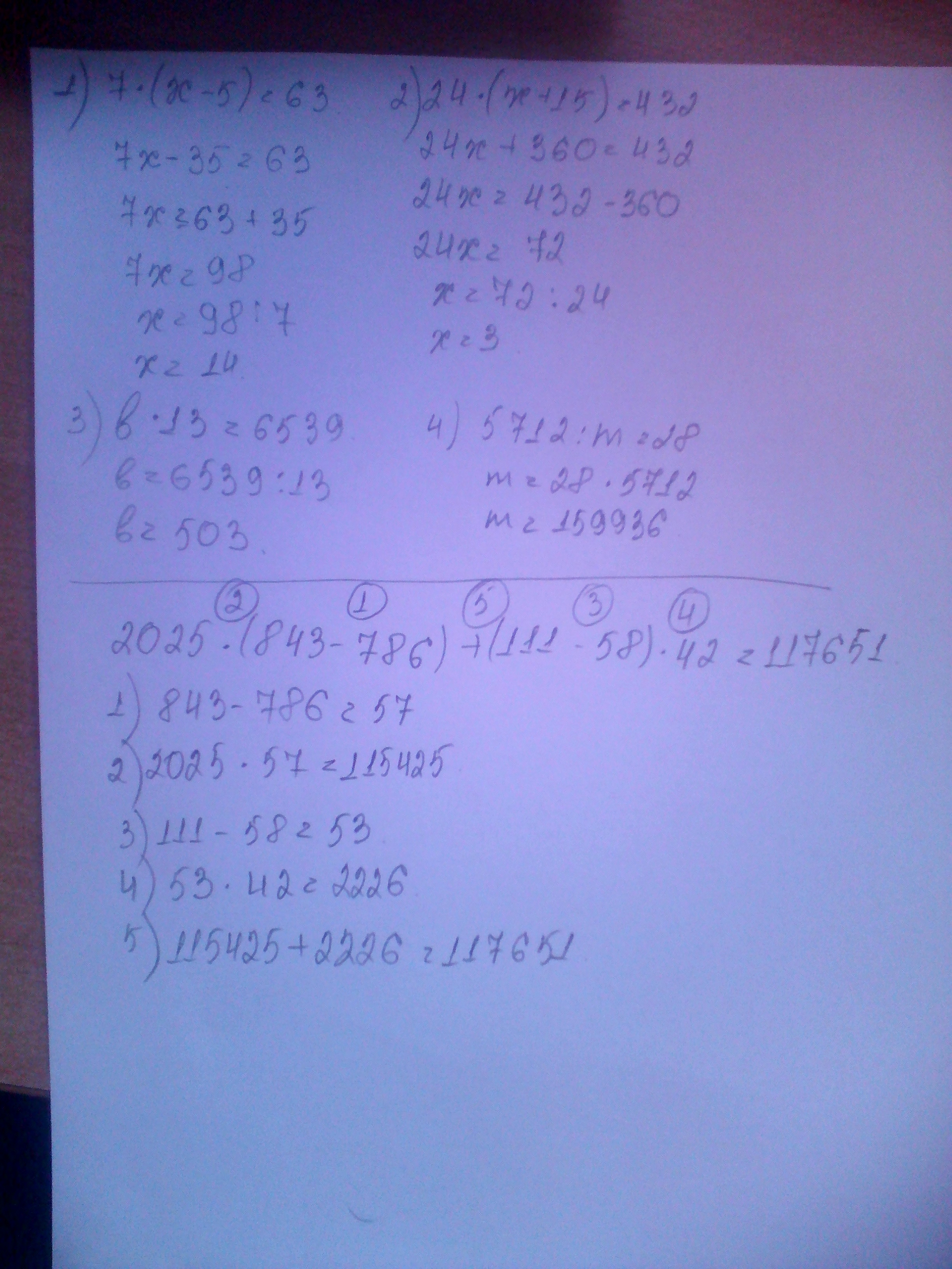 1) Найдите значение выражения: 2 025*(843-786)+(111-58)*42=