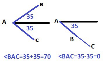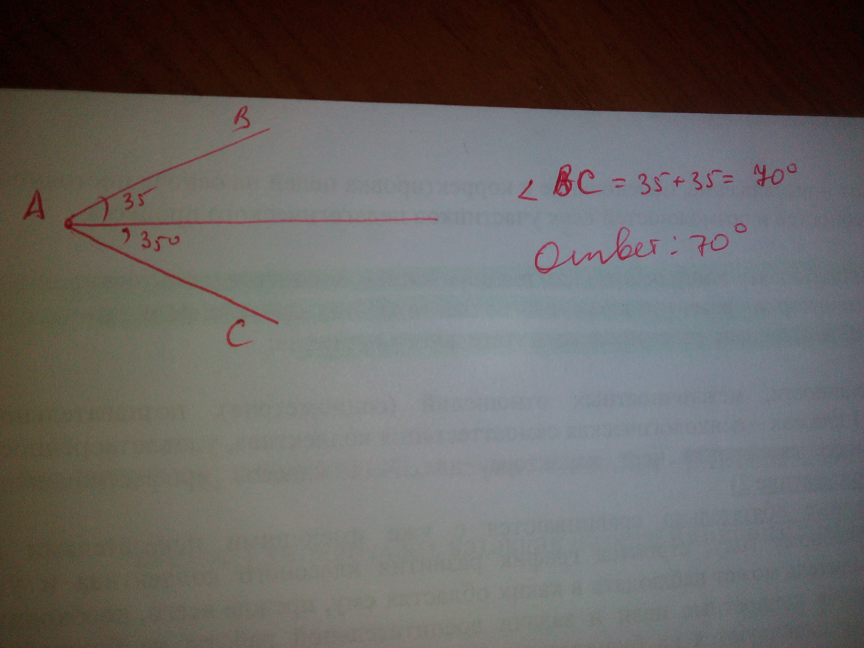 от полупрямой а с начальной точкой А отложены два разных угла(ав) и (ас) с градусной мерой 35° каждый. чему равен угол (вс)? ответ обоснуйте